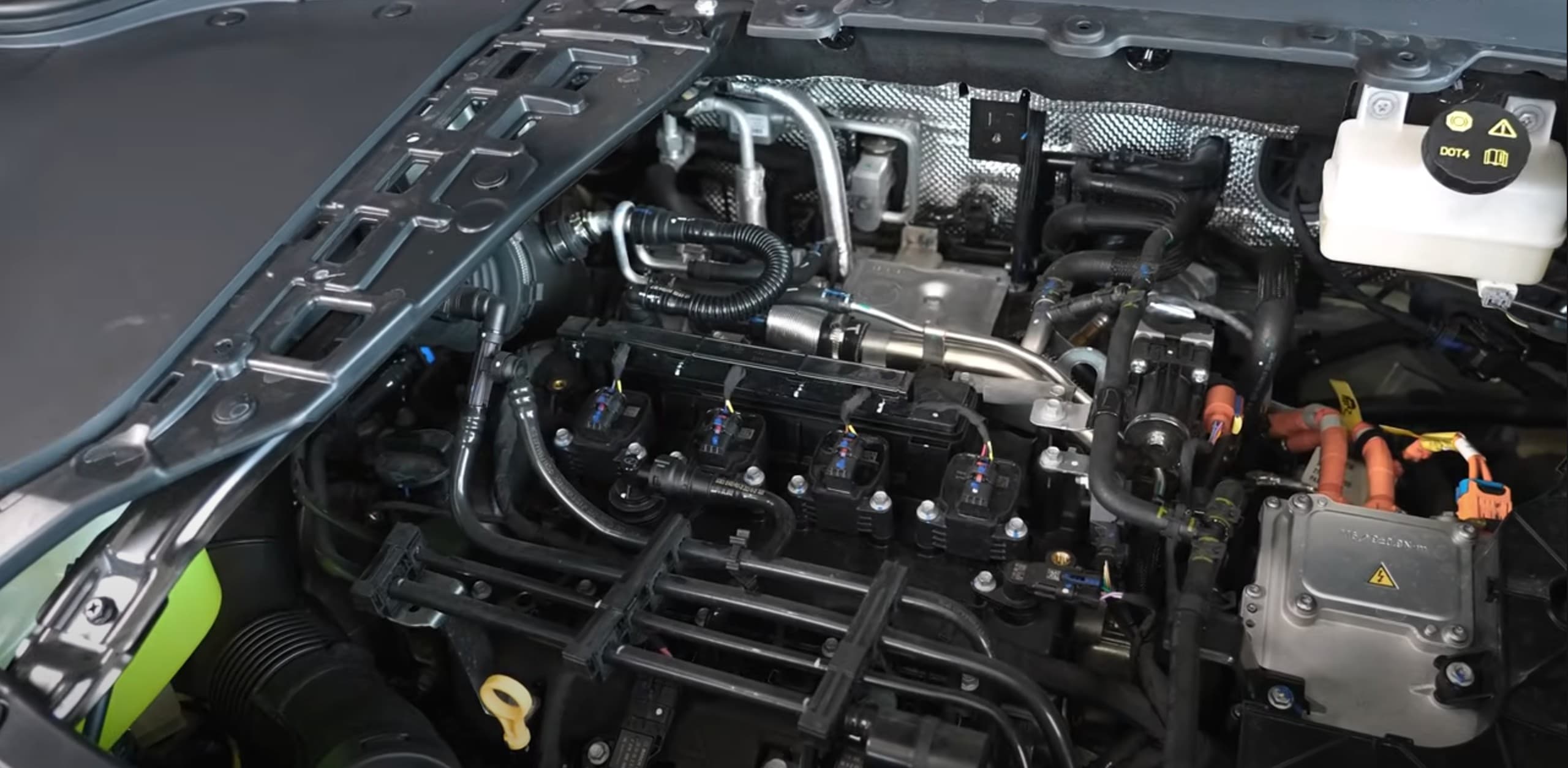 Открыв капот, вы не увидите привычной «подноготной» автомобиля. Всё, включая щуп для проверки уровня масла, закрыто от глаз и рук пластиковой крышкой. Просто так снять её нельзя, потому как кожух крепится на пластиковые пистоны, близкие к одноразовым. Мы не стали ломать крепления, благо, ничего особо интересного там нет. Для желающих заглянуть за ширму, приводим изображение с YouTube-канала дилерского центра Major Auto, которые оказались максимально любопытными в данном вопросе.