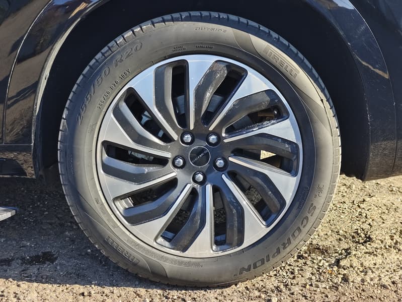Колёса у автомобиля — R20 с установленной резиной Pirelli Scorpion 255/50. Покрышки достаточно тихие, надёжные и долговечные. Существует опция, которая оценивается дилером в сто тысяч рублей, при заказе которой на Seres установят колёса 21-го диаметра с резиной 265/45.