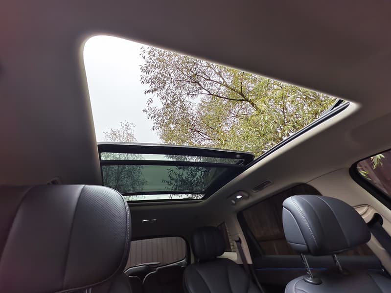 По всей длине автомобиля проходит огромная панорамная крыша, которая создаёт особую воздушность и дополнительное ощущение пространства салону.