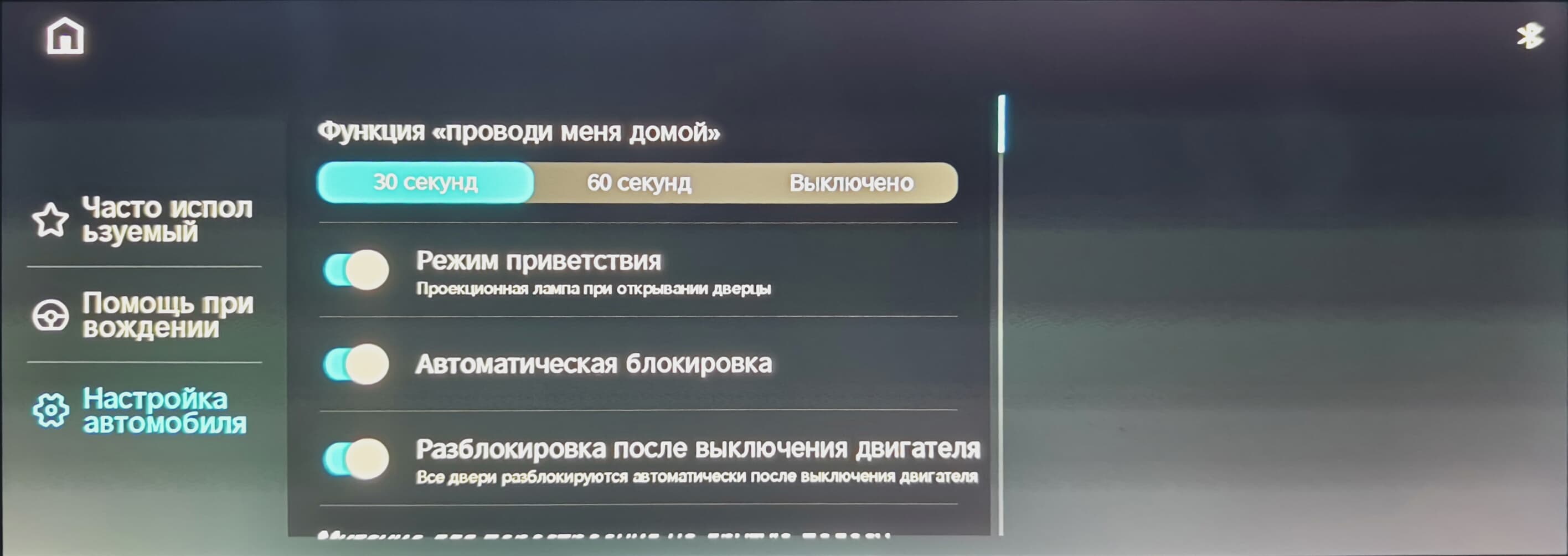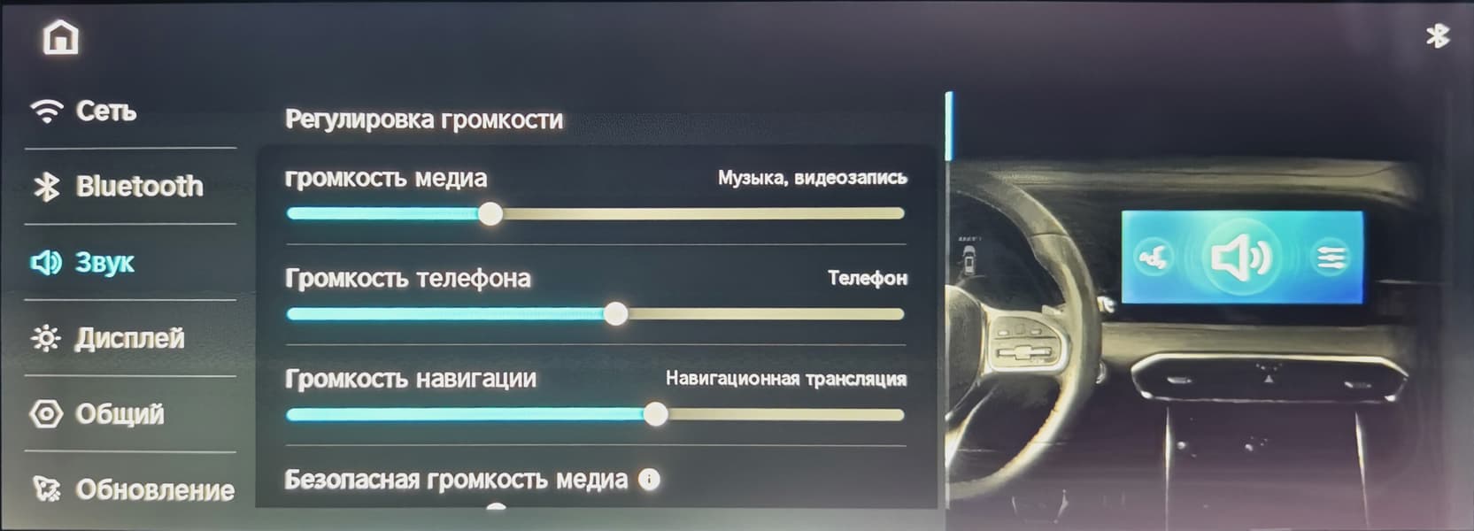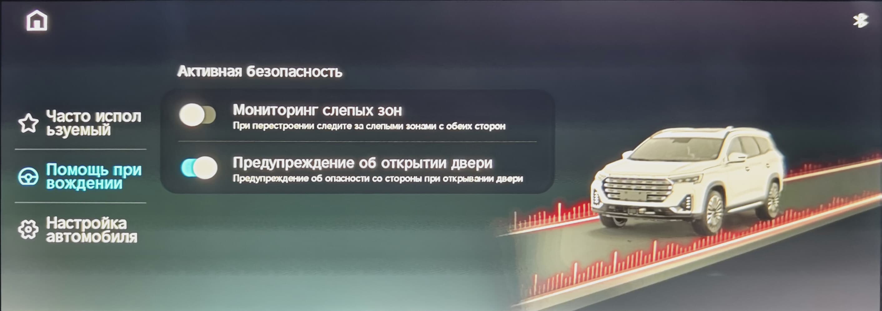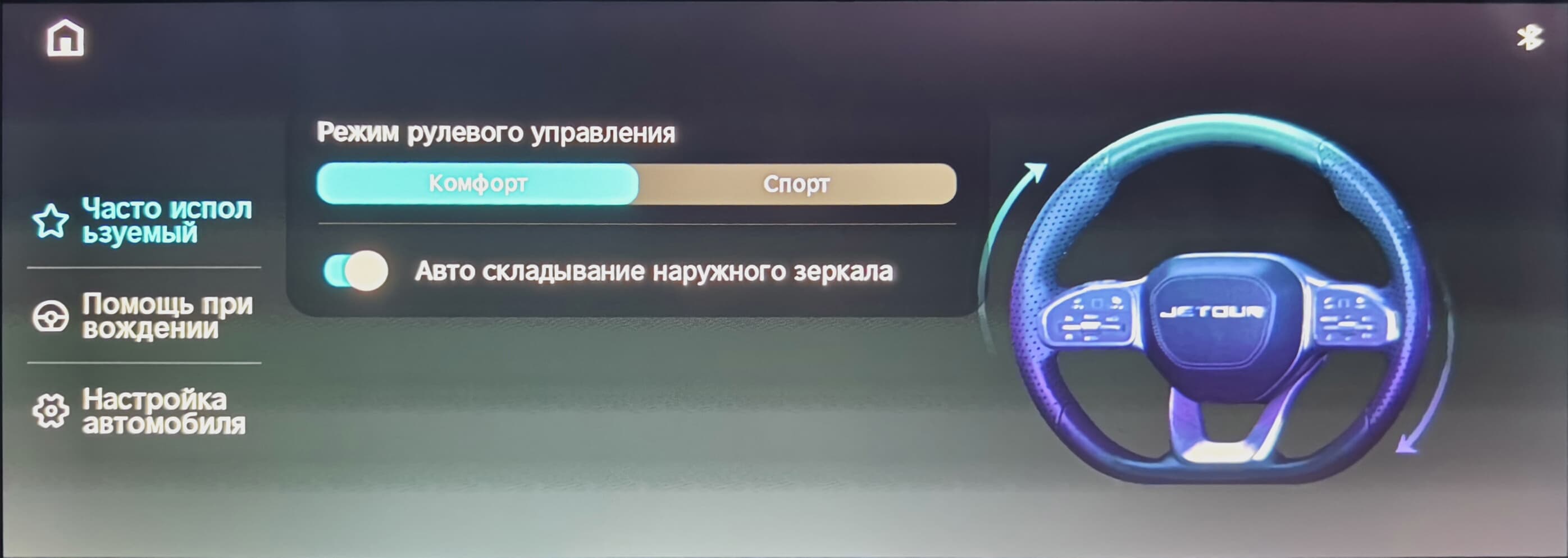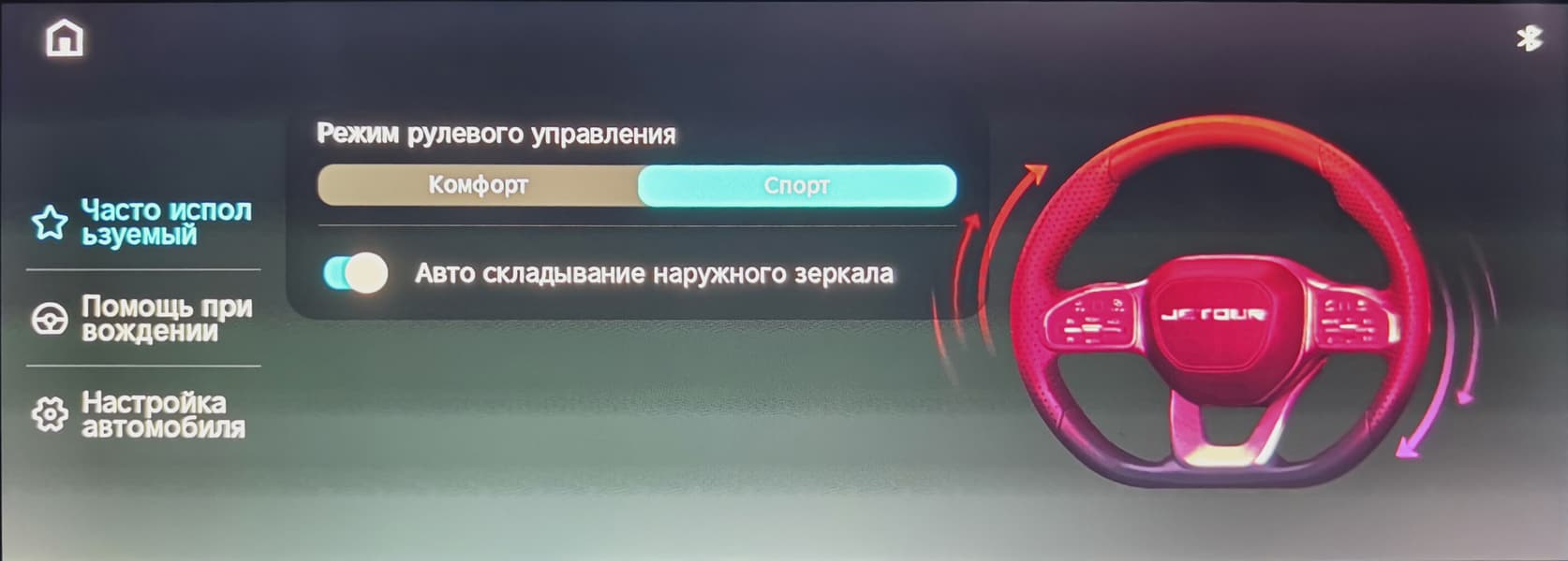 до настроек режимов рулевого управления и активной безопасности.