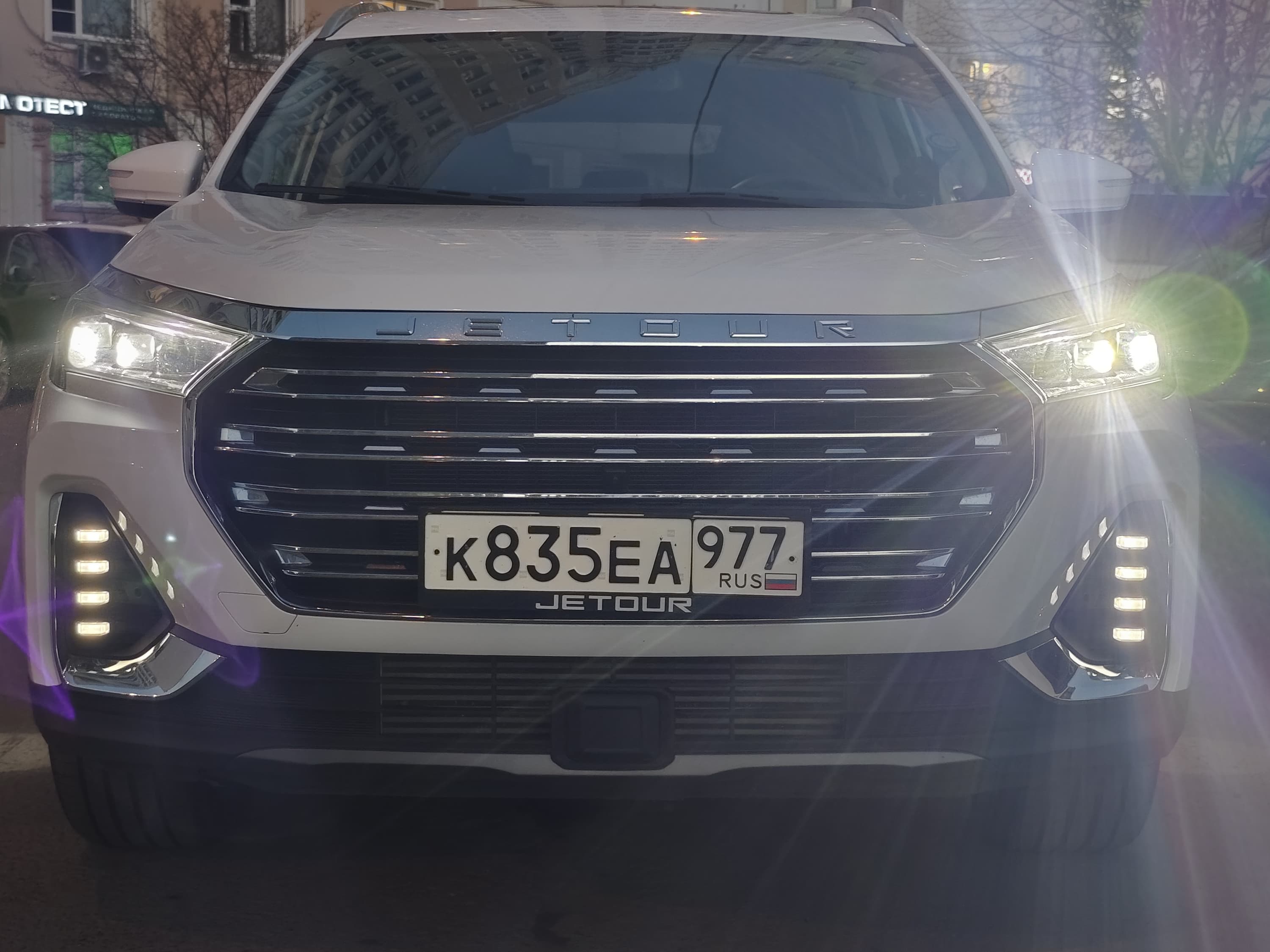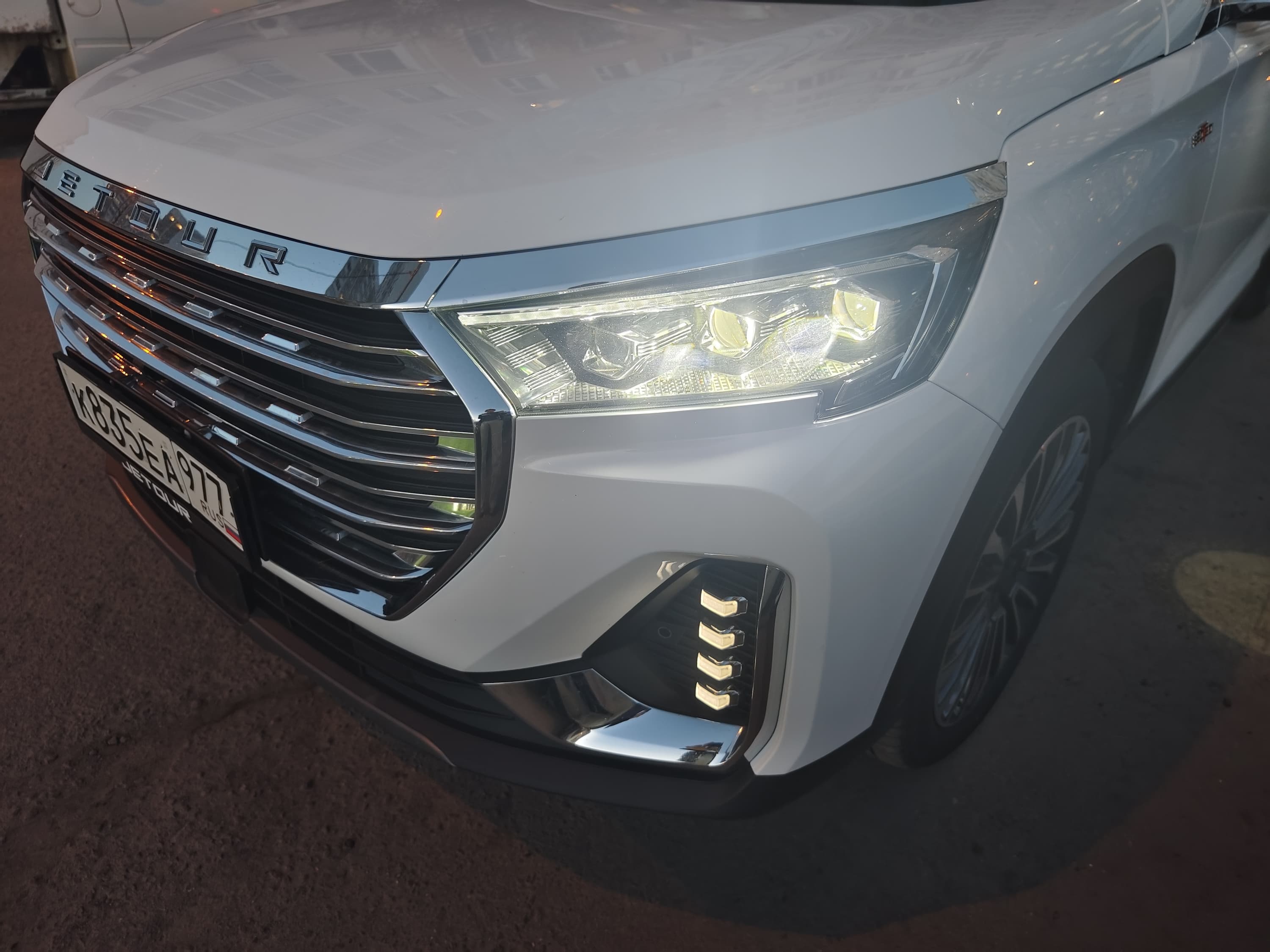 Автомобиль оснащён светодиодными фарами, которые не только обеспечивают высокий уровень освещения дороги, но и придают кроссоверу стильный облик за счёт сложной формы фар со множеством граней и изгибов.