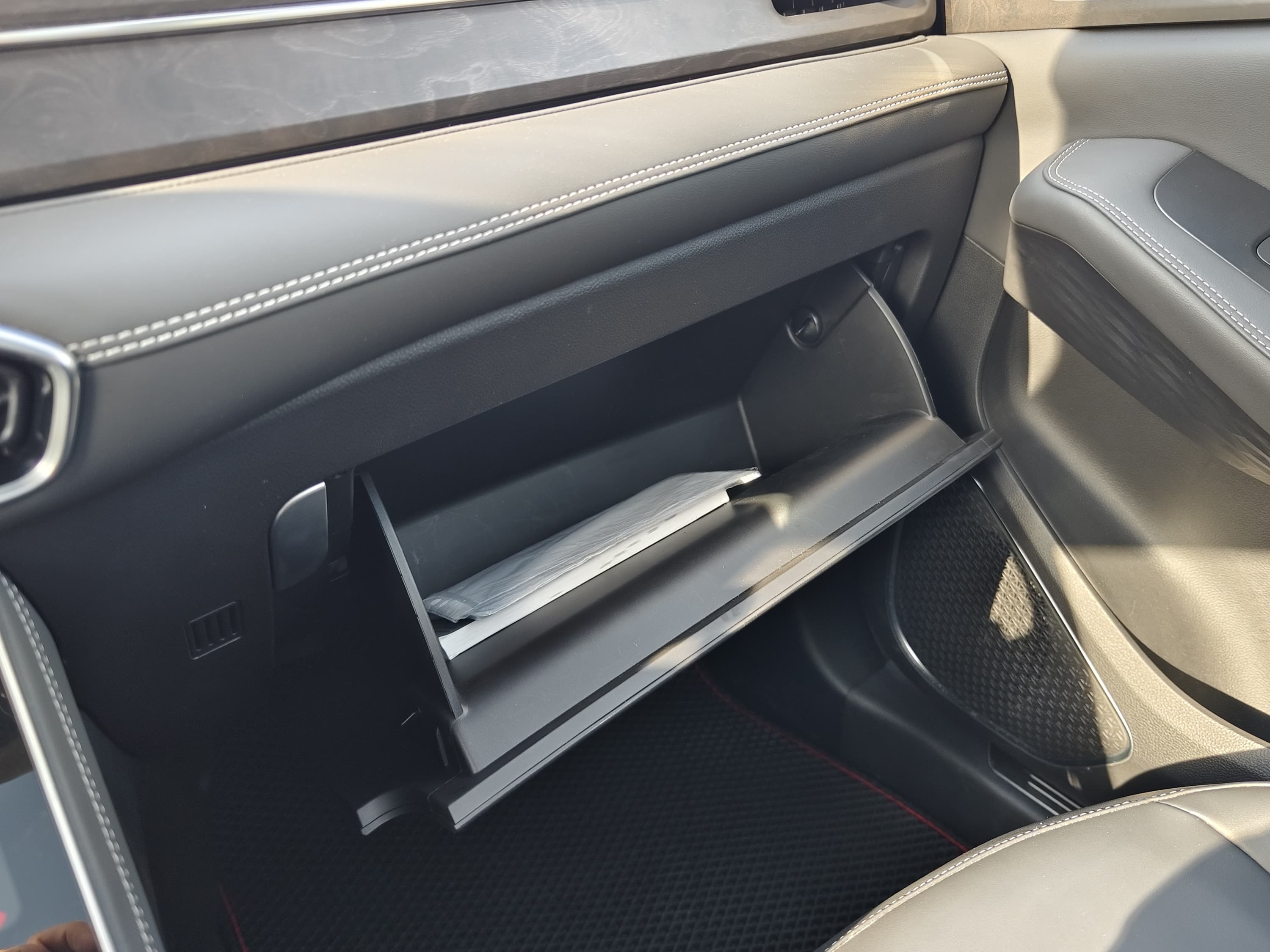 Да, есть глубокие отсеки в охлаждаемом подлокотнике и приличного объёма «бардачок», но хочется, чтобы в прямом доступе было больше ниш и поверхностей, куда можно было бы просить ключи, монеты, салфетки и другие полезные в дороге вещи.
