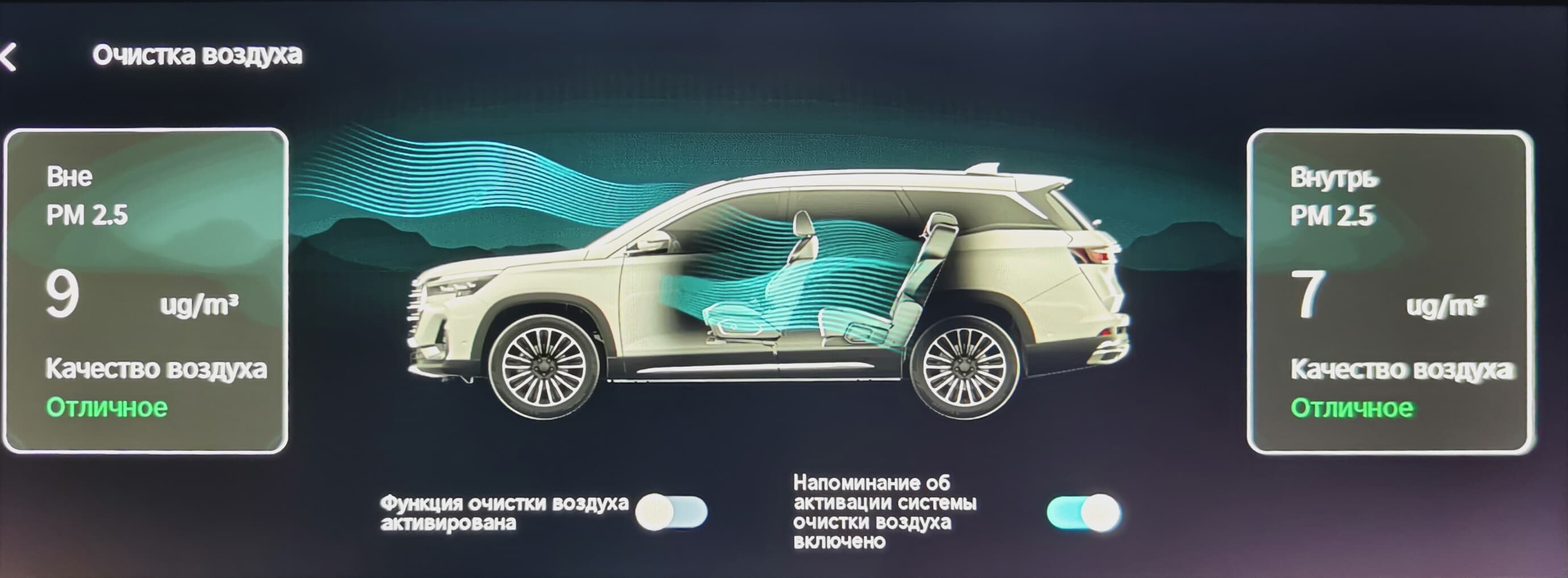 Остальными настройками можно активировать функцию очистки воздуха, знакомой нам по Dashing