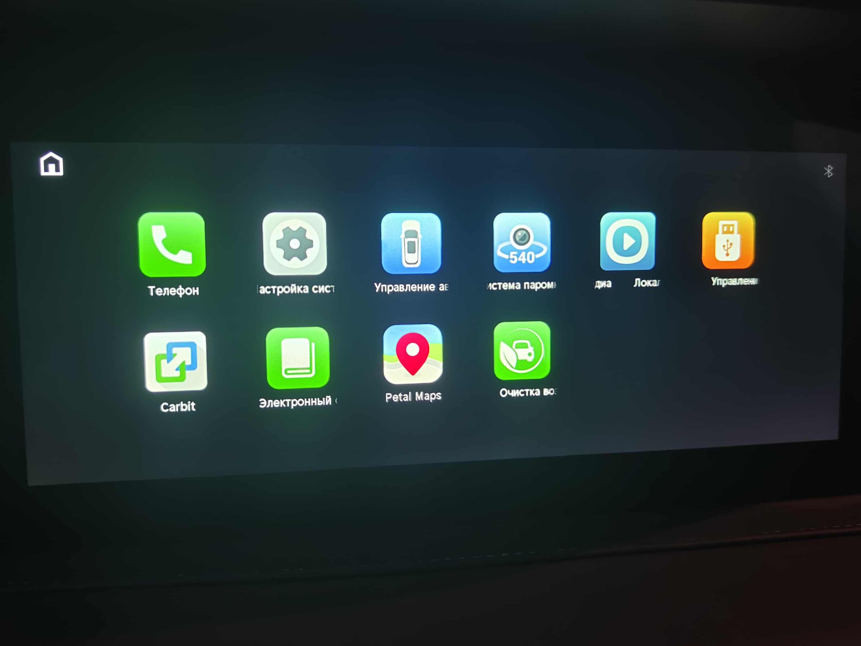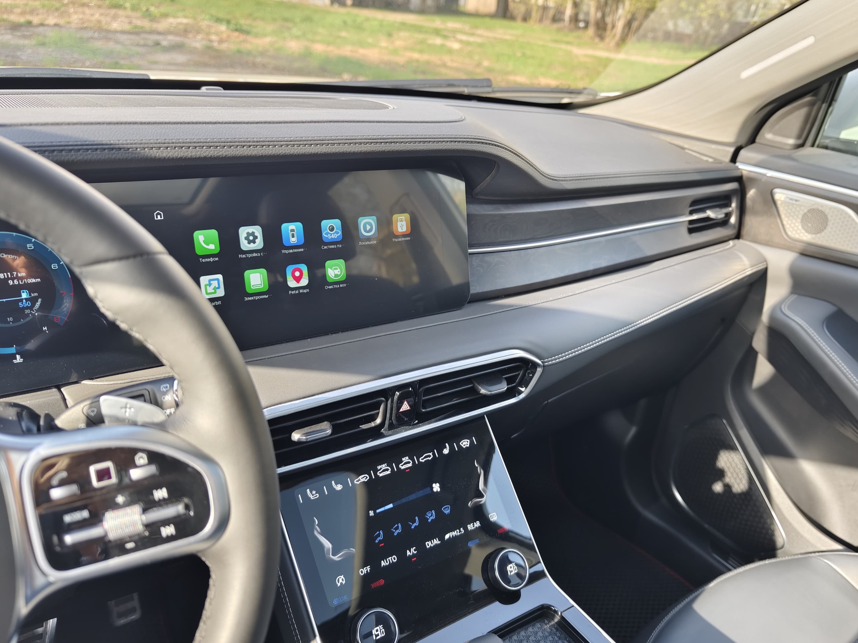 Меню мультимедийной системы состоит из десяти иконок, в числе которых электронная инструкция, настройки, штатная навигация Petal Maps и иконка активации камер кругового обзора.
