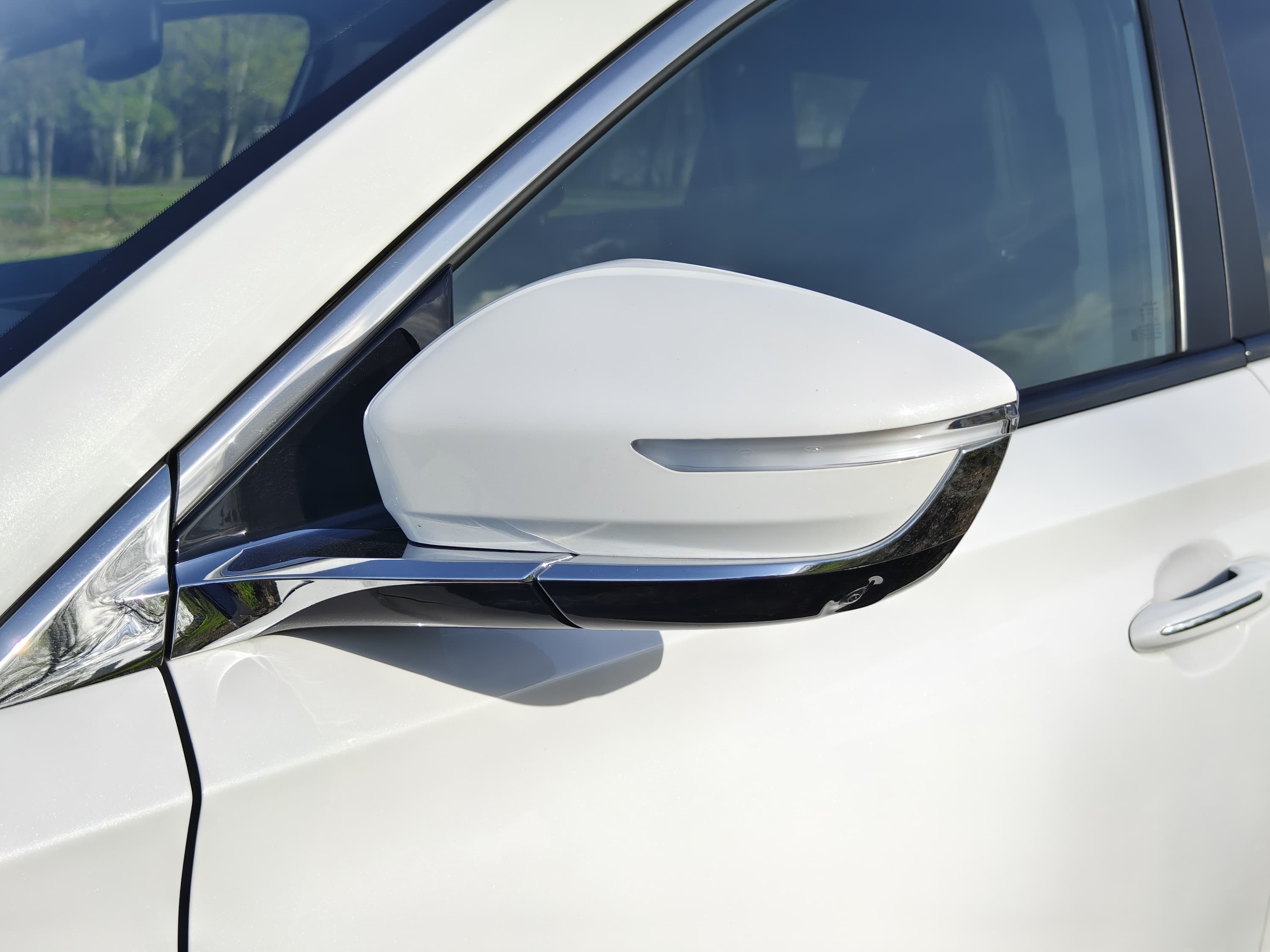 Сразу бросаются в глаза большие, удобной формы зеркала заднего вида. Пожалуй, одни из наиболее удобных в больших кроссоверах. Максимально информативные с минимальными искажениями картинки.