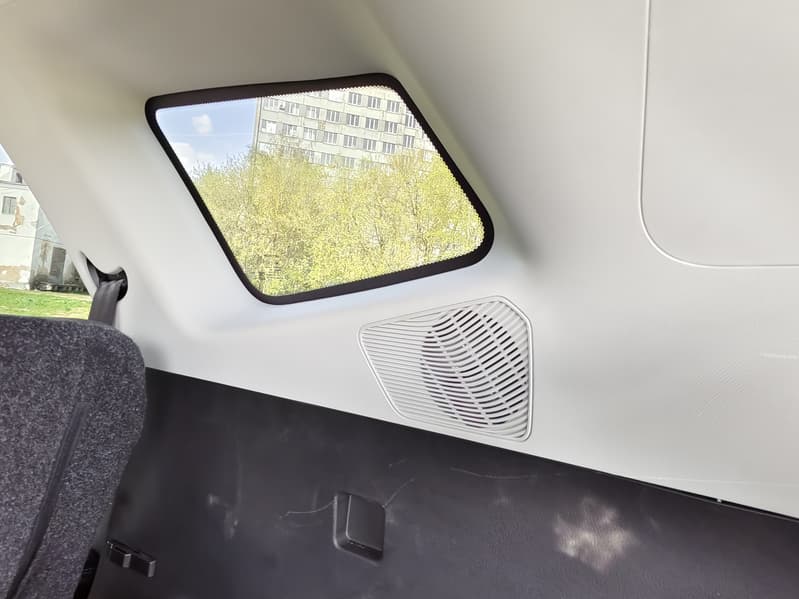 Спинки передних кресел находятся далеко от попутчиков водителя, потолок с панорамной крышей находится высоко даже для крупных пассажиров, пол совсем ровный, а пороги широкого дверного проёма в любую погоду остаются чистыми.