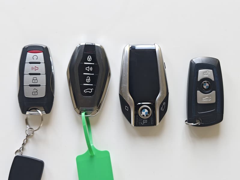 Ключ доступа в автомобиль имеет массивную ромбовидную форму, что, на наш взгляд, лишено особого смысла. В кармане такой ключ держать неудобно, а функций на нём — не больше, чем у любого другого автомобиля. Для сравнения на фотографии — ключ с экраном от BMW примерно схожего размера и веса. Но там хоть понятно, что в ключе уместили целый сенсорный экран.
