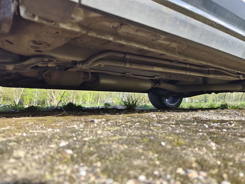 А в пределах внушительной (2850 мм) колёсной базы под днищем выпирает ничем не защищённая система выпуска.