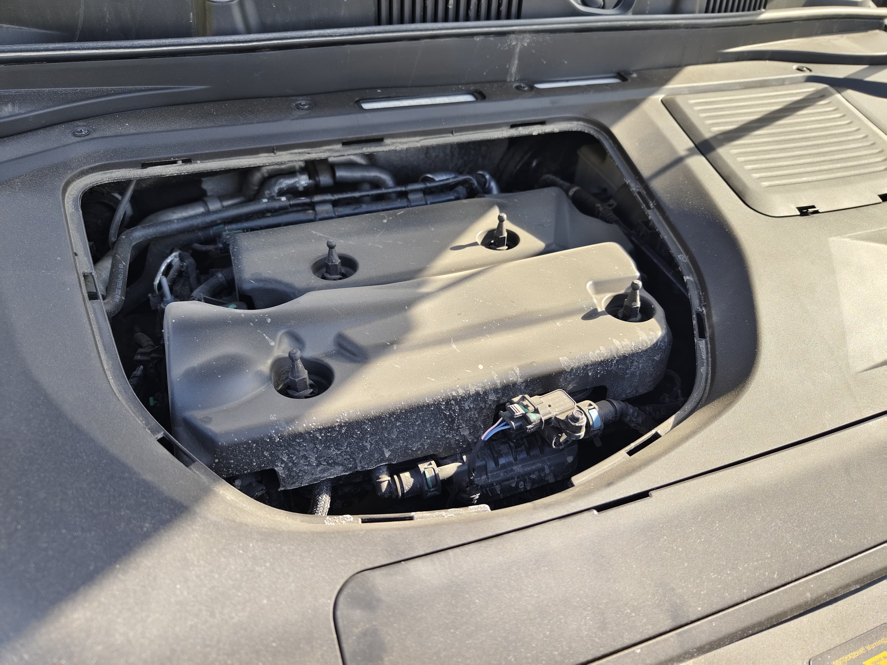 В деталях изучить подкапотное пространство не представляется возможным, потому как все агрегаты закрыты большой пластиковой крышкой.