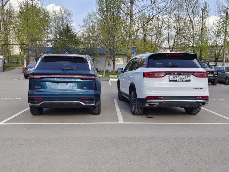 Из актуального сравнения по габаритам — Geely Mongaro. Как и положено по паспортным характеристикам, визуально Jetour выглядит немного выше и чуть шире.