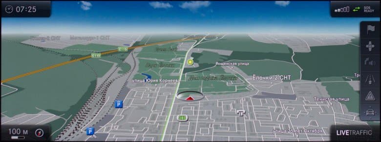 В нашем тестовом автомобиле была установлена опциональная система Comand Online, являющаяся мультимедийным комбайном, реализующим функции информирования, развлечения, навигации, управления и коммуникации.