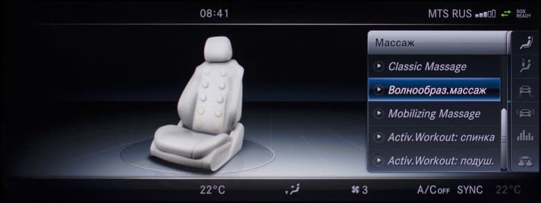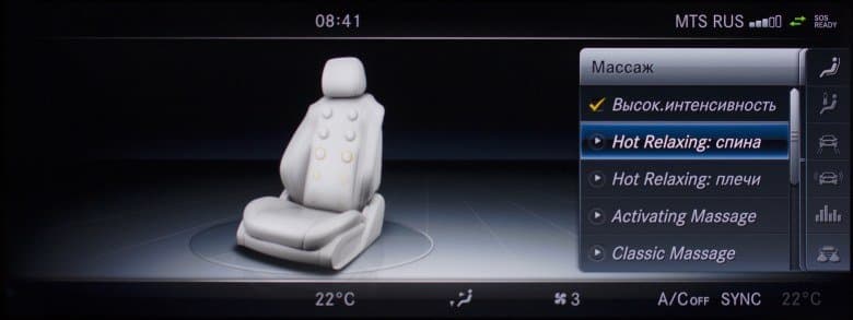 Отметим, что после некоторого времени работы массажная функция отключается, и для того, чтобы запустить ее заново, требуется снова пройти несколько уровней иерархии меню. Но эту особенность можно обойти, внеся нужный пункт меню в список «Избранное». К сожалению, нельзя задавать время работы массажной функции до ее отключения.