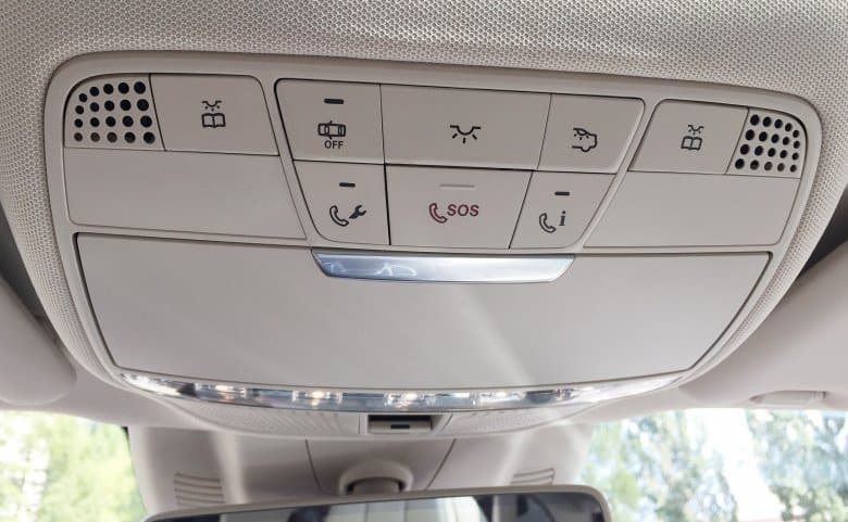 В случае поломки или при необходимости записаться на плановое обслуживание можно связаться с сервисной службой Mercedes-Benz, нажав на потолочной панели кнопку с пиктограммой телефонной трубки и гаечного ключа.