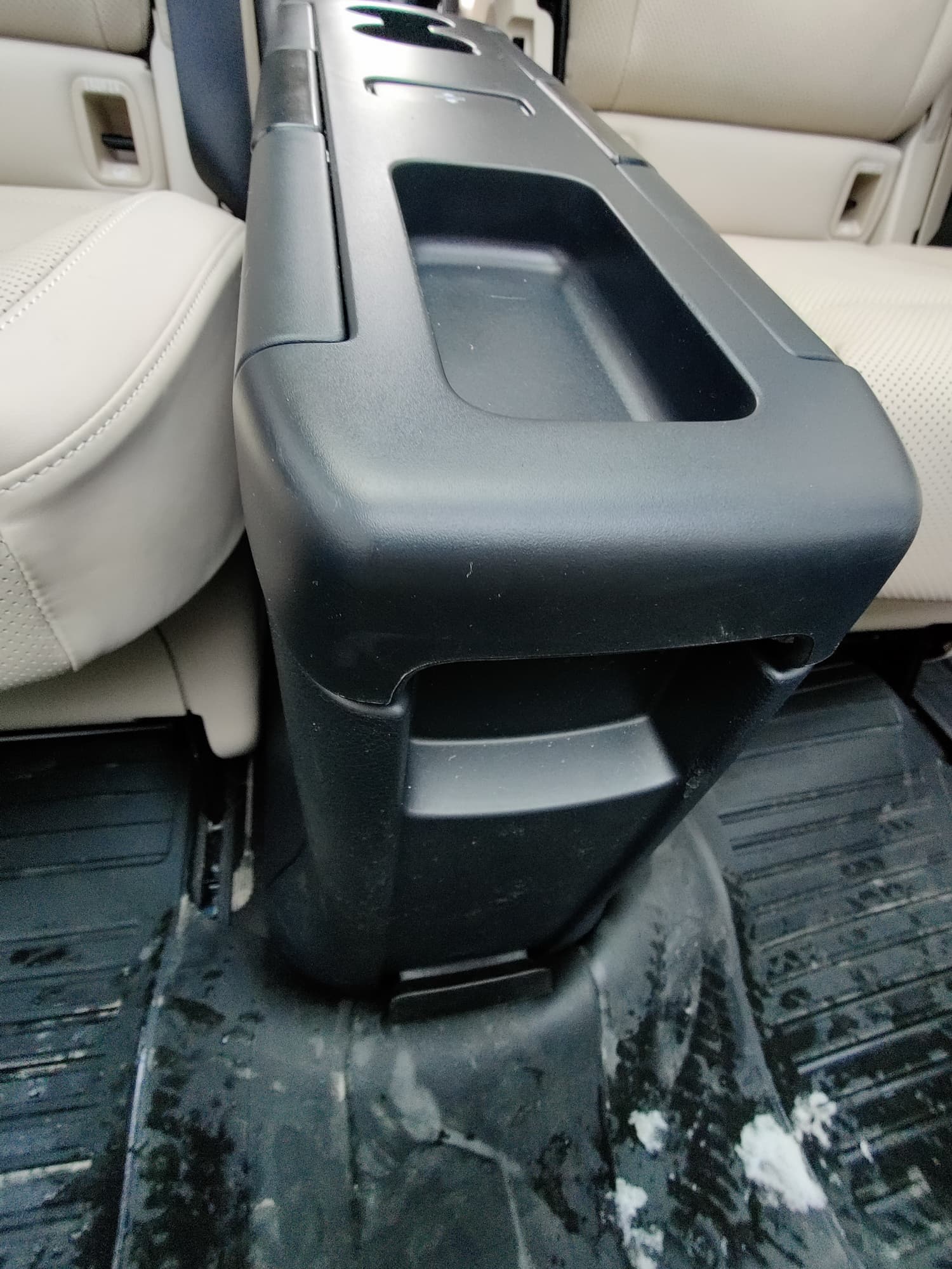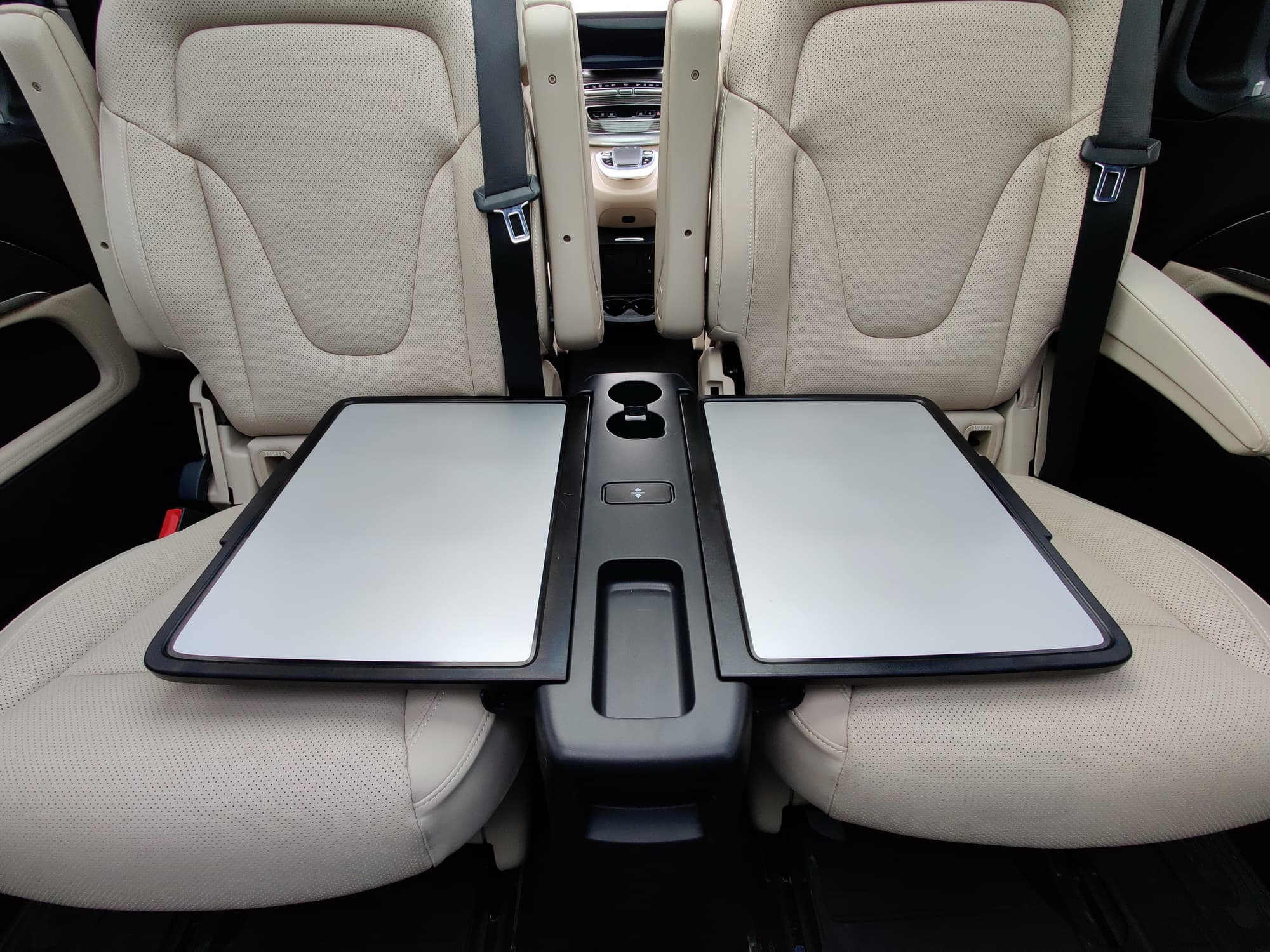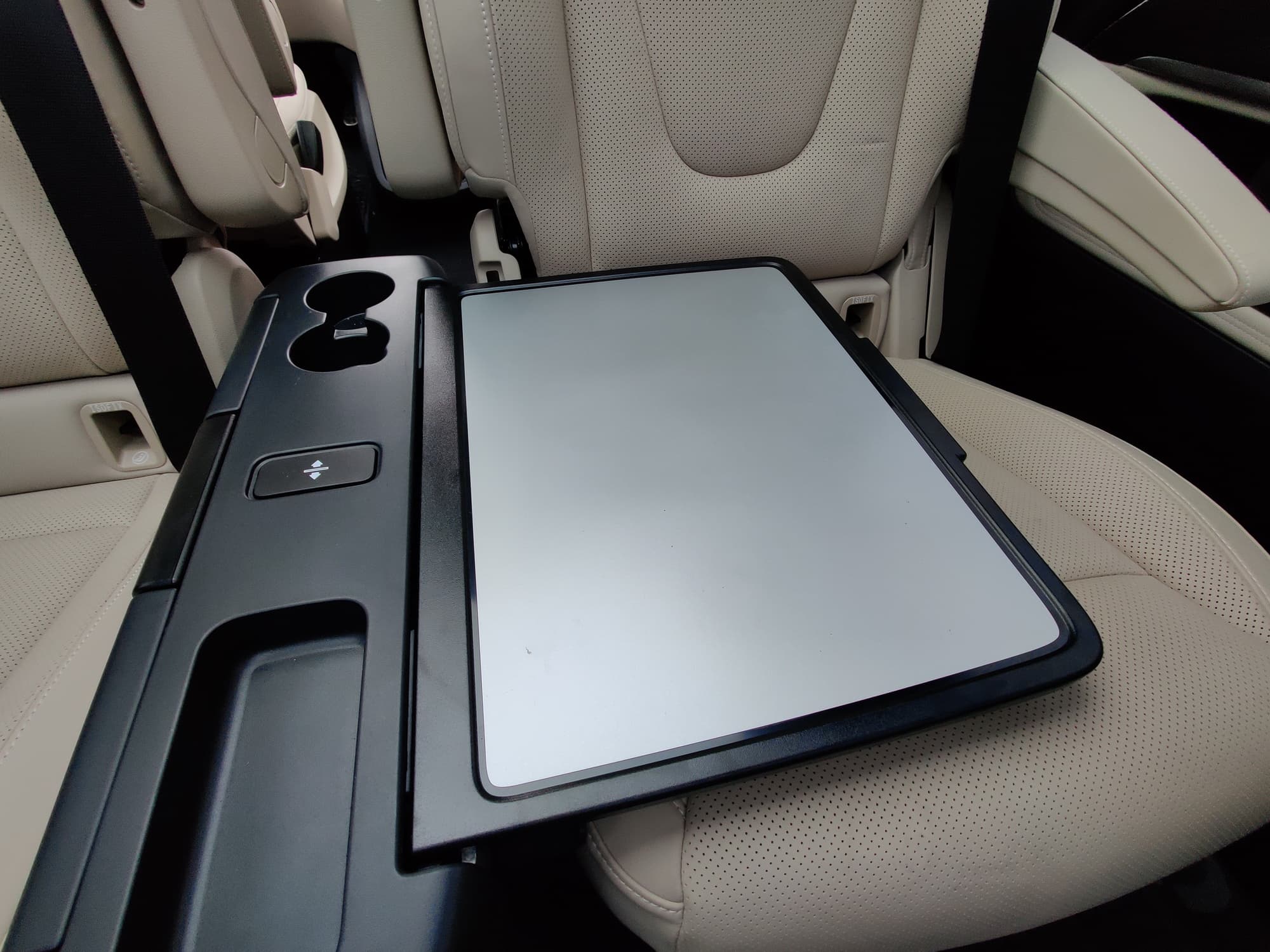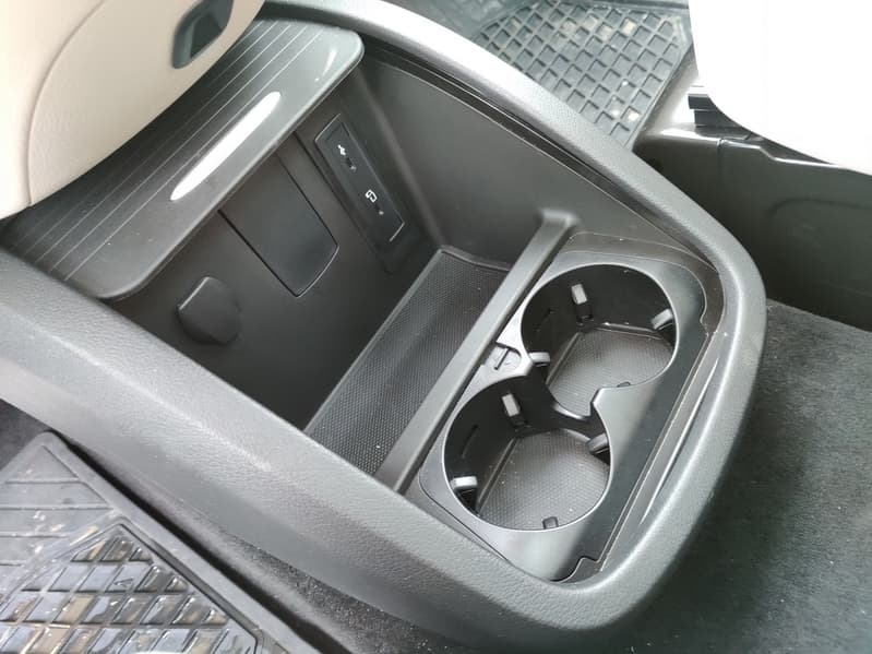Возвращаясь ко второму ряду сидений, нельзя не упомянуть столик, который в сложенном состоянии находится между сидениями и смещен в сторону водительского сиденья.