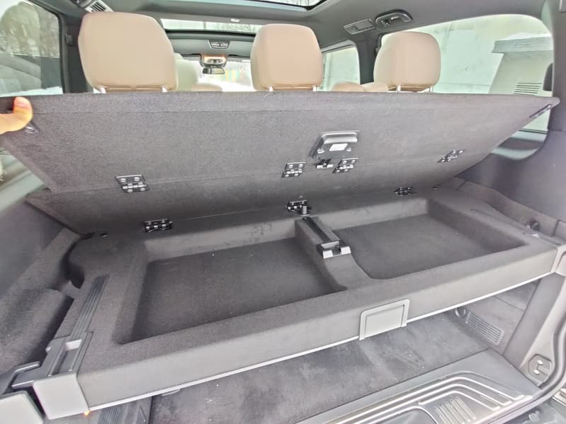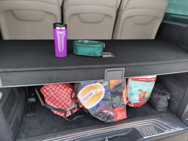 Если поклажи немного, то сумки и чемоданы можно погрузить под встроенную полочку, внутри которой есть полезное пространство для мелочей, необходимых в дороге, которым не нашлось места в салоне.