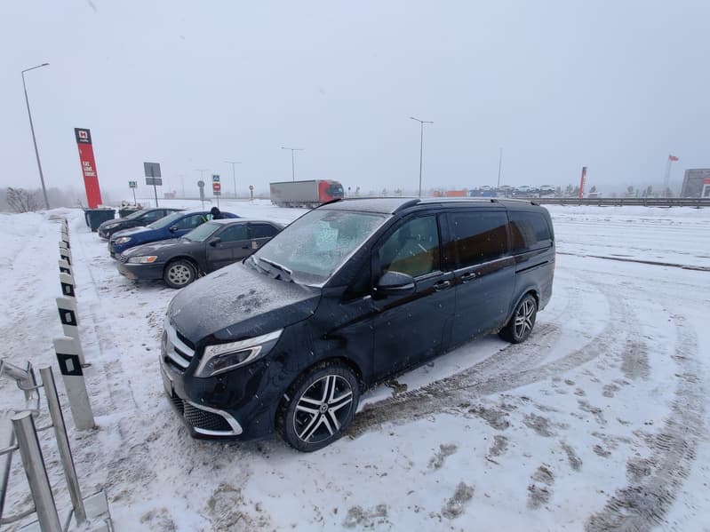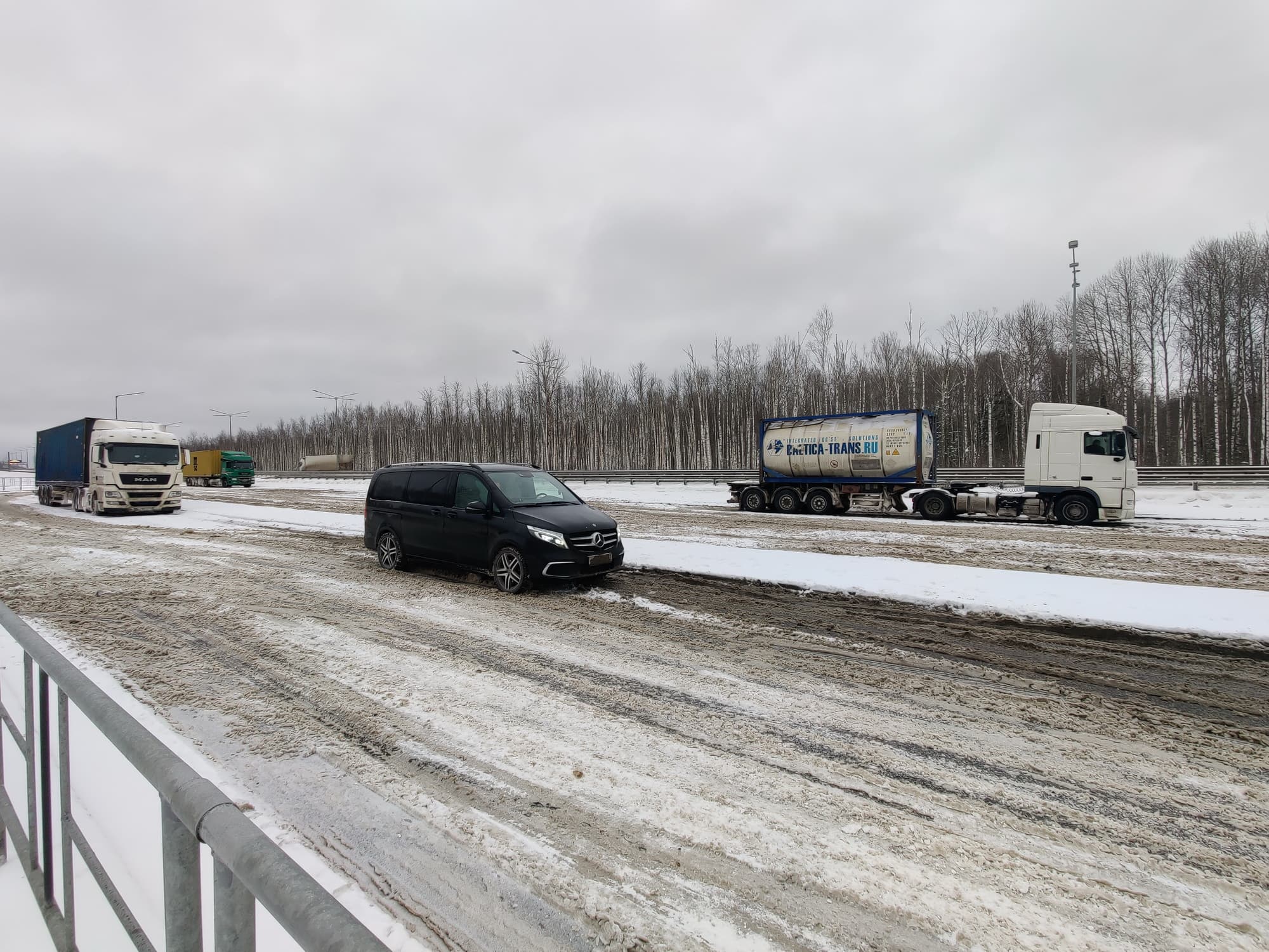 Этот Mercedes-Benz дал такое ощущение надежности и уверенности на заснеженной трассе, какое не удавалось испытывать еще ни на одном автомобиле. С этой точки зрения автомобиль просто выше всяких похвал. Пассажиры поняли, насколько сложная дорога, только когда вышли на биопаузу на одной из АЗС.