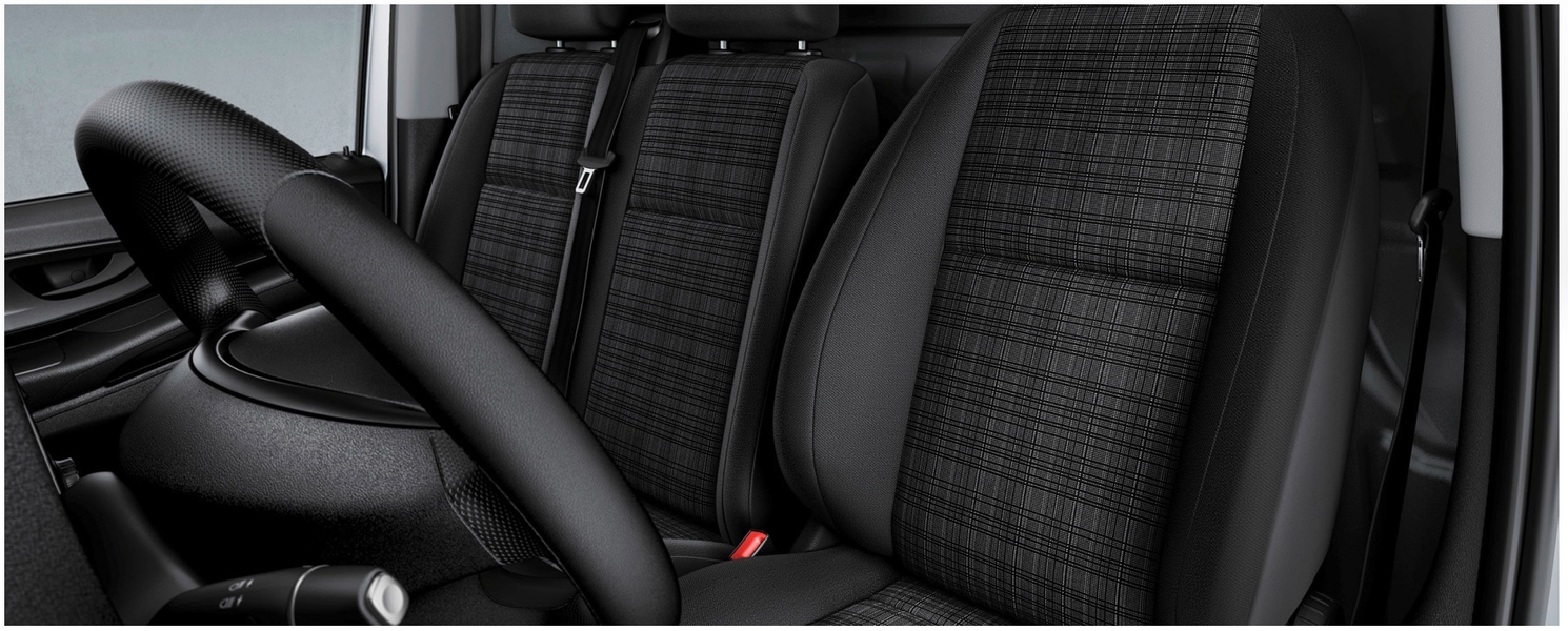 Взглянув на кресла в тестовом Vito также можно заметить нотки экономии. Для обивки использован тканевый материал Tunja («Тунха»), который далек от премиальных.