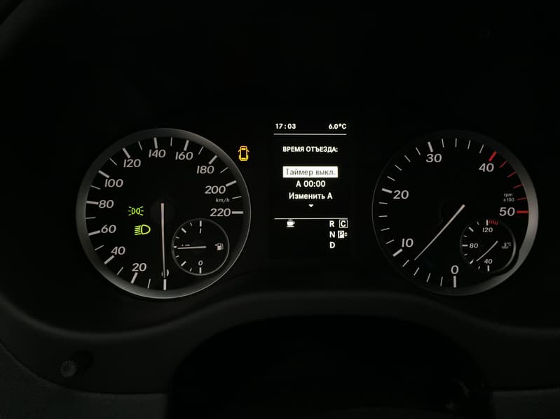 Стоит отметить, что в качестве опции можно доукомплектовать автомобиль полноценным большим экраном, который встраивается на самом верху консоли, а под ним располагаются все остальные элементы. В текущей же простой комплектации на консоли можно найти россыпь механических кнопок, а перед водителем — стандартную мерседесовскую аналоговую панель.