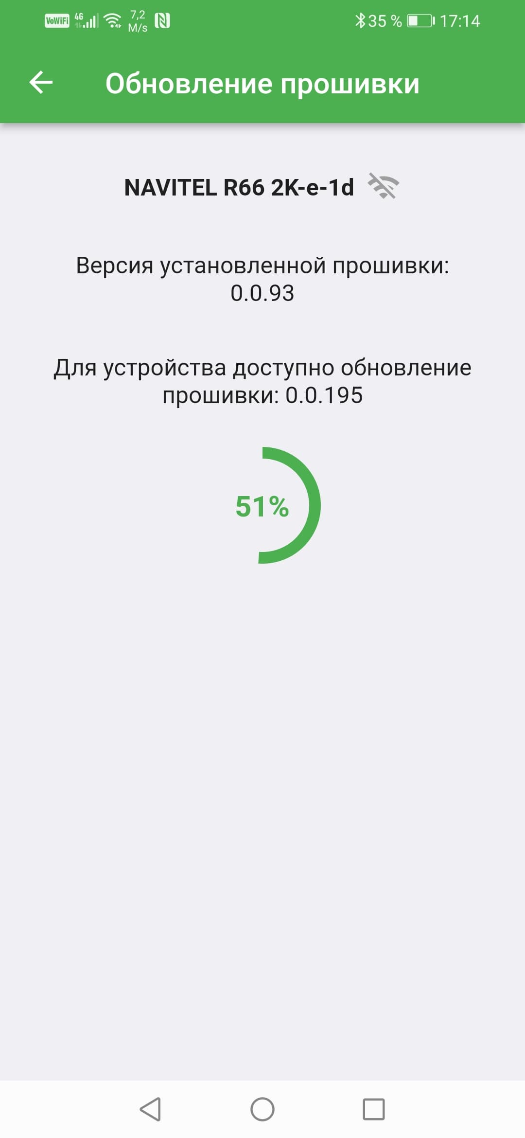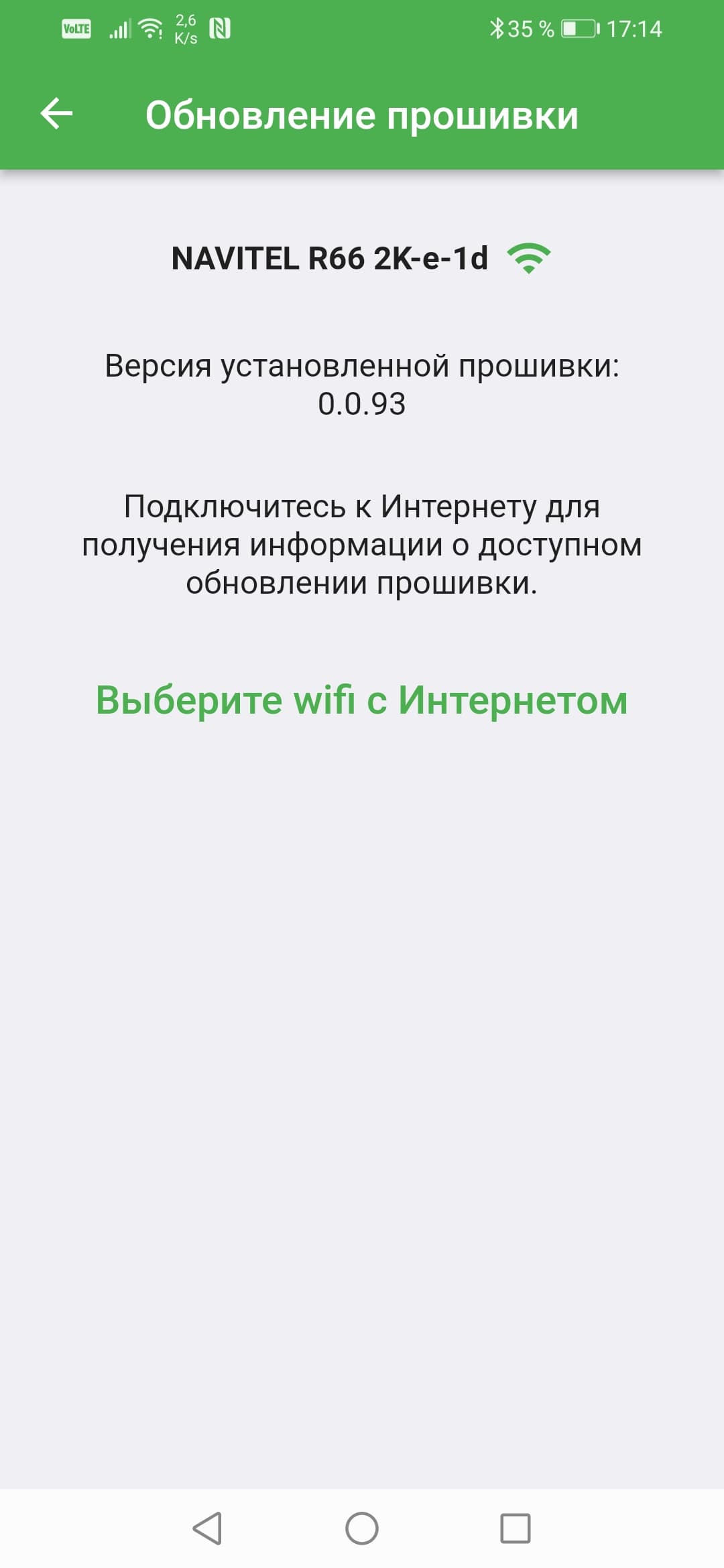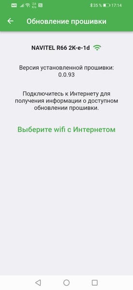 Начать общение с регистратором следует с обновления прошивки. Оно производится довольно хитрым способом, требующим усидчивости и внимания. Во-первых, нужно запустить пункт Обновление, затем по просьбе регистратора переключиться на сеть Wi-Fi с интернетом, затем вернуться в приложение, скачать обновленную версию прошивки, снова переключиться на Wi-Fi-точку регистратора, и лишь теперь скачанное обновление будет установлено. Все это не займет и двух минут, если вы не ошибетесь в последовательности переключений с одной сети на другую.