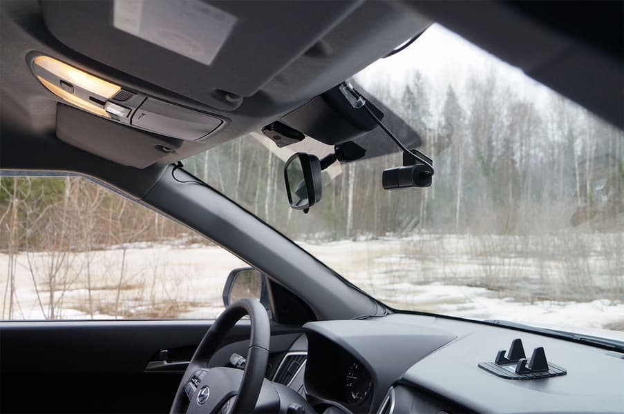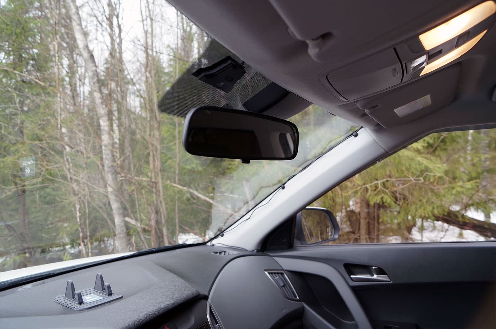 Теперь попробуйте отыскать установленный регистратор, взглянув на лобовое стекло снаружи. Нету? А он там есть! Многие оценят такую незаметность регистратора.