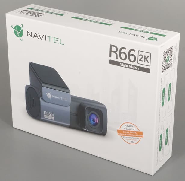 Регистратор Navitel R66 2K поставляется в белой коробке с напечатанным на ней подробным техническим описанием прибора.