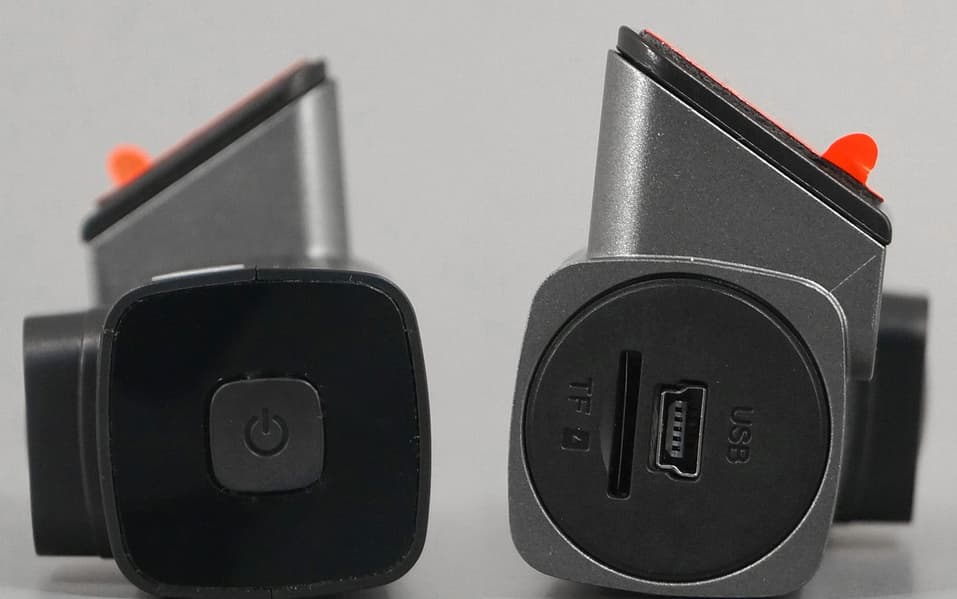 На торце блока с объективом расположена кнопка принудительного включения-выключения прибора. Другая сторона корпуса содержит слот для карты памяти формата microSD/SDHC/SDXC и разъем Mini-USB, через который регистратор получает питание (как нетрудно догадаться, обычные 5 В). Кстати, почему Mini-USB, а не Micro-USB? Дело в том, что Mini сам по себе немного попрочнее, а современный Type С тут совершенно неуместен, избыточен и слишком дорог.