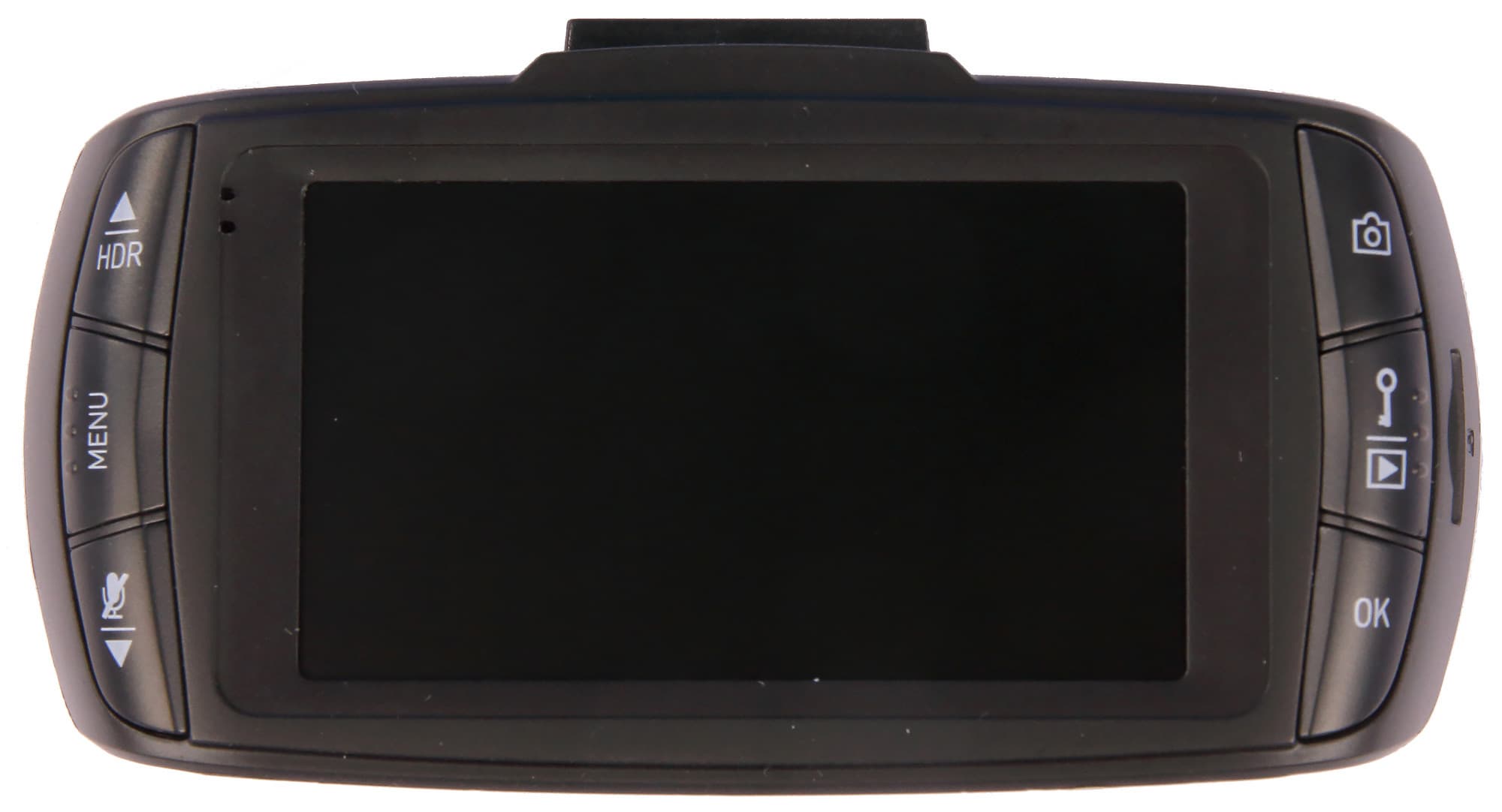 В левом верхнем углу экрана расположились 2 светодиода: красный и синий. Синий горит, когда подключено питание (даже при выключенном регистраторе), красный горит, когда видеорегистратор включен, а если идет запись — мигает.