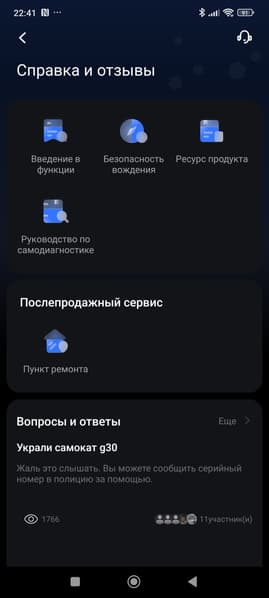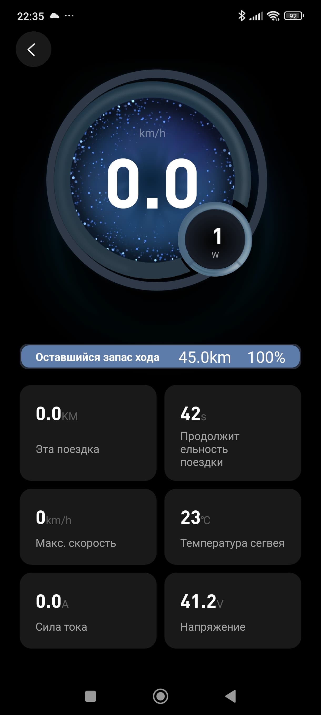 В разделе «приборная панель» нам покажут дистанцию поездки и ее время, приблизительный оставшийся запас хода, максимальную скорость, температуру самоката, а также напряжение и силу тока.