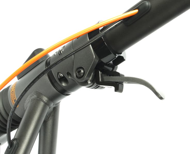К переднему колесу подведен тросик дискового тормоза. Он допускает тонкую регулировку, благодаря чему всегда есть возможность настроить его работу оптимальным образом. Убедиться в том, что тормоз работает корректно, и в случае необходимости отрегулировать его мы рекомендуем прямо перед началом эксплуатации.