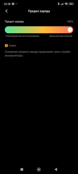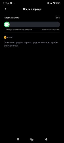 - «предел заряда» позволит ограничить максимальный уровень заряда аккумулятора в диапазоне от 80% до 100%, что позволит продлить его срок службы