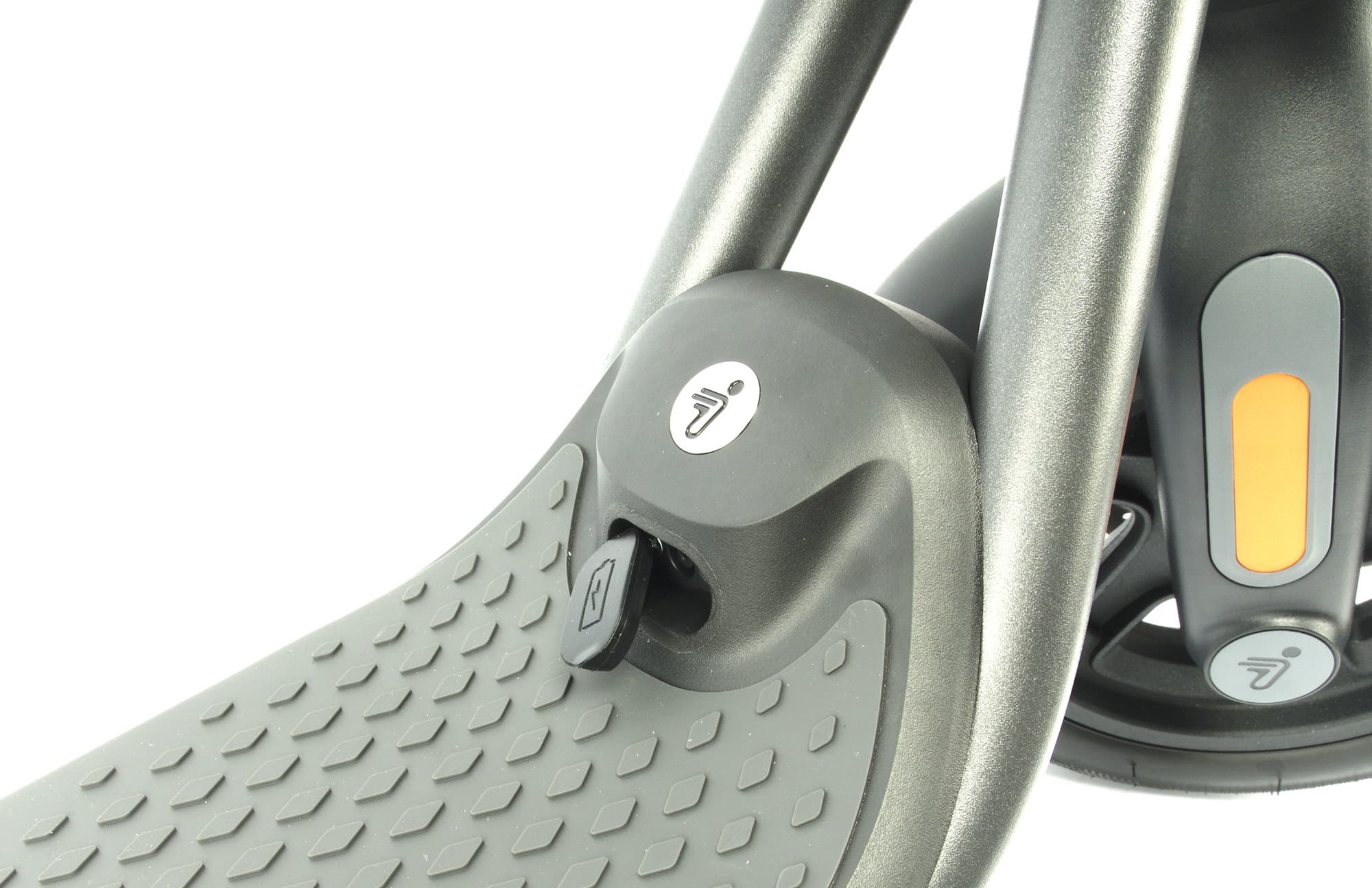 В нижней части стойки находится складной механизм, позволяющий сложить самокат.
