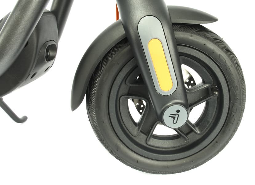 Они имеют не слишком глубокий противоскользящий протектор. Предполагаем, что сцепление колес с поверхностью будет неплохим, но не идеальным. Очевидно, перед нами в первую очередь городской самокат, а не «внедорожник». Колеса у KickScooter F2 Pro бескамерные, а значит, имеют повышенную устойчивость к проколам. Производитель и вовсе называет их «самогерметизирующимися».