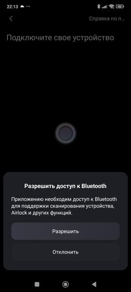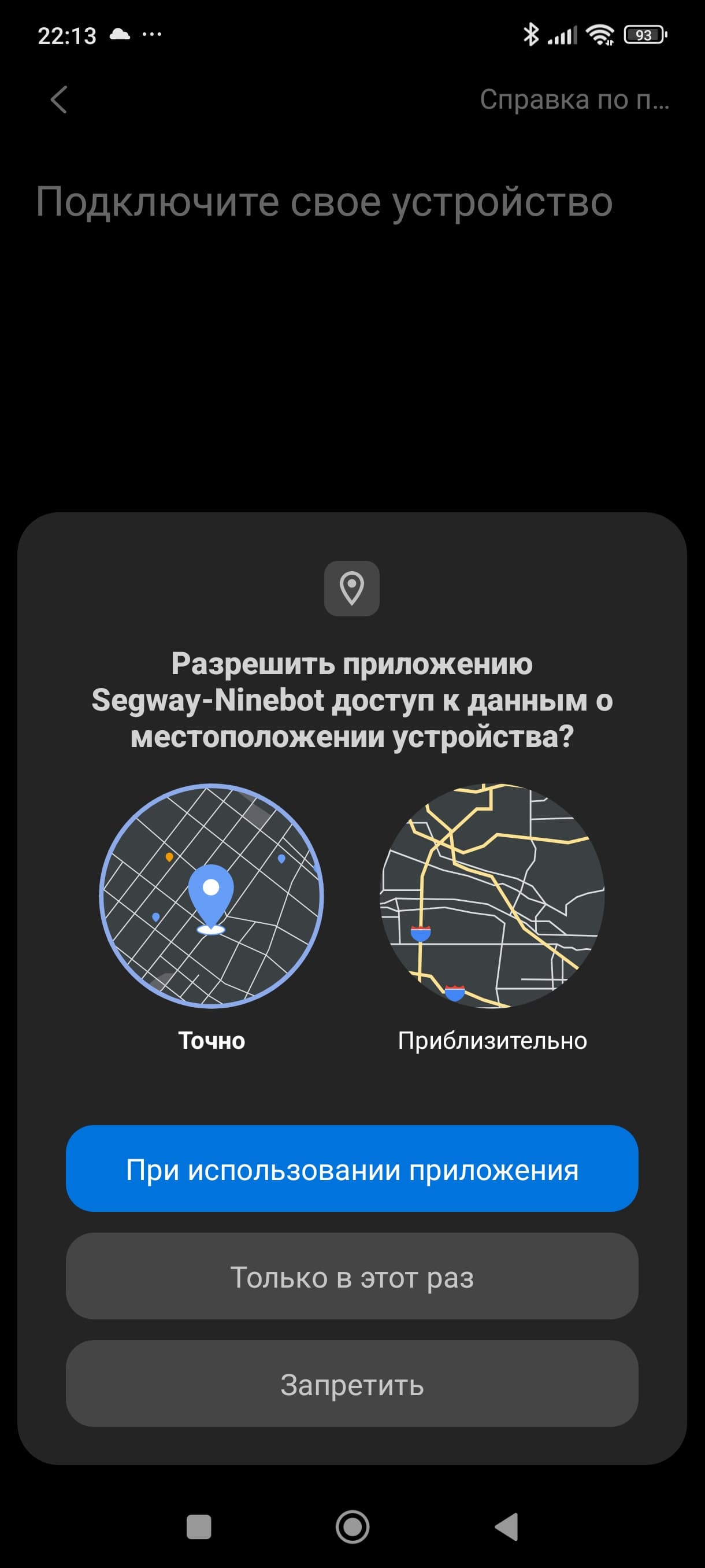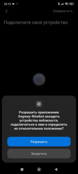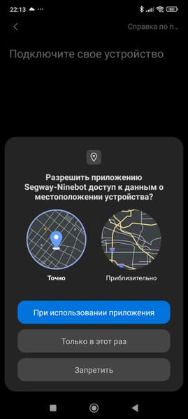 Следующий этап — привязка самоката. Предоставляем приложению дополнительные разрешения...