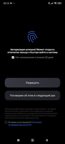 Процесс установки оказался вполне стандартным. Соглашаемся с пользовательским соглашением, регистрируем новый аккаунт, разрешаем (или запрещаем) авторизацию по отпечатку пальцев...
