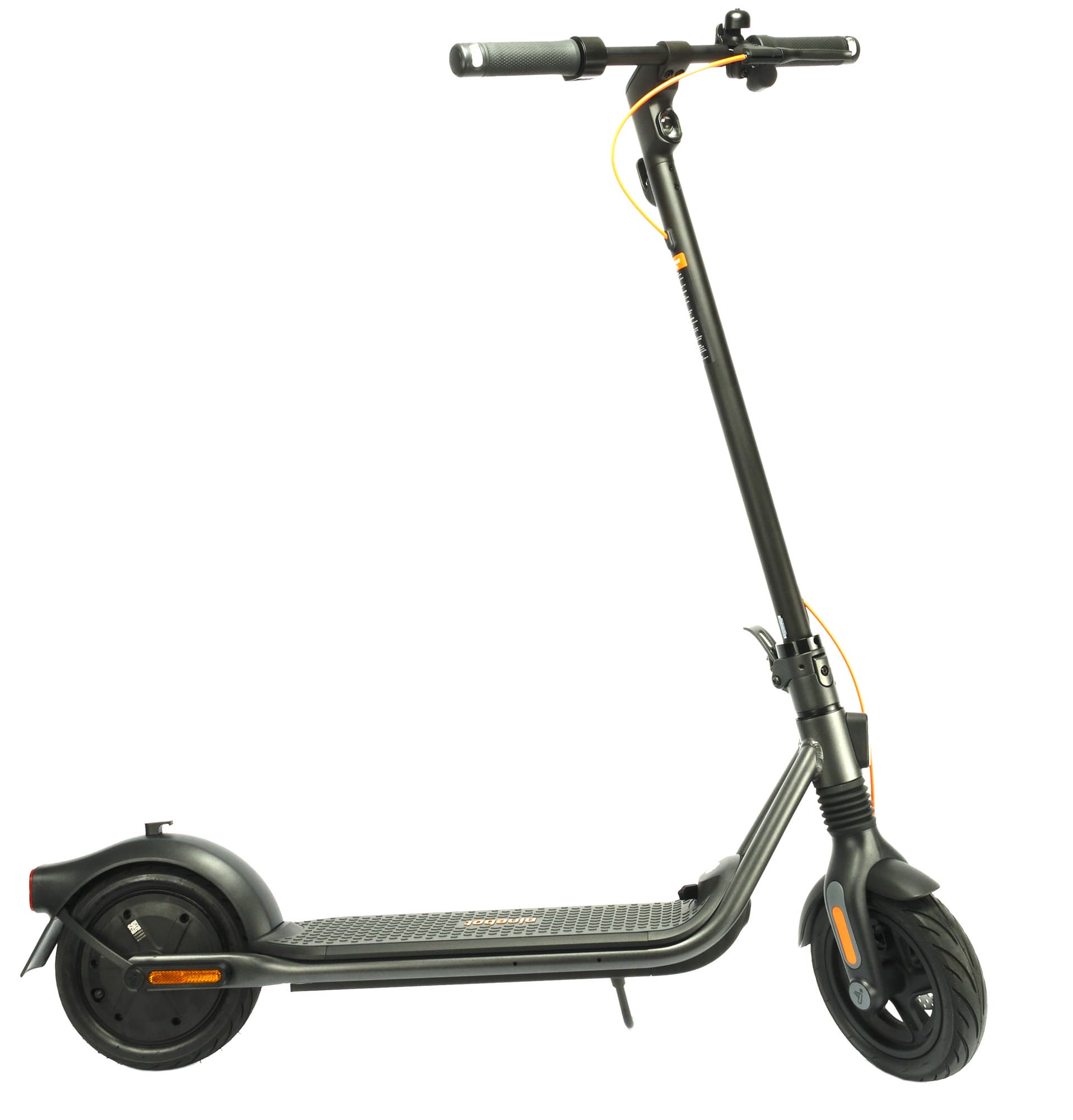 Ninebot KickScooter F2 Pro — топовая модель из линейки KickScooter F2, представленной тремя моделями. Самокат оснащен мощным мотором мощностью 450 Вт, имеет передний амортизатор и способен развивать скорость до 25 км/ч.