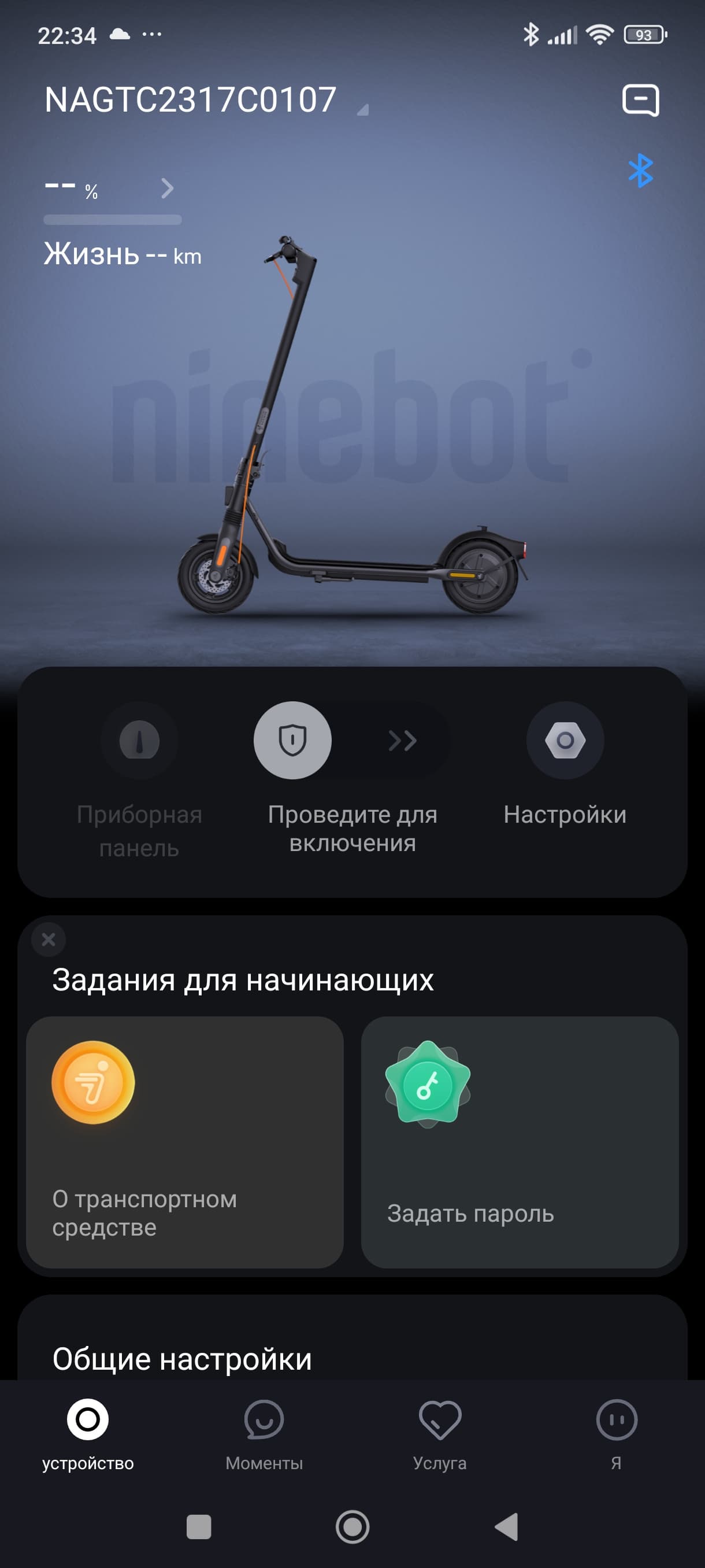Поскольку устройство не отключаются полностью, Bluetooth у него активен всегда. Даже если самокат выключен, к нему всё равно можно подключиться через приложение, в том числе включить дистанционно.
