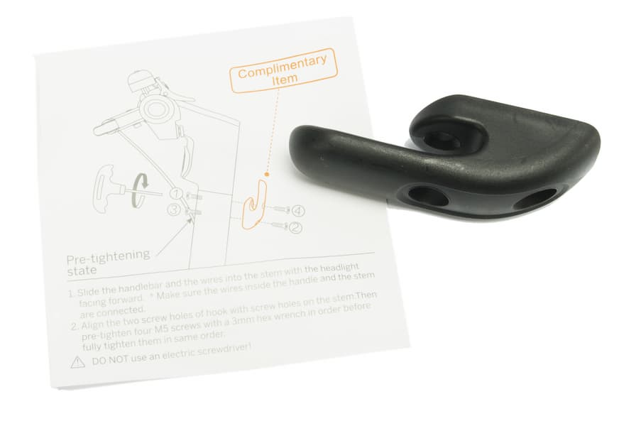 В комплекте также обнаружился небольшой подарок от производителя («complimentary item») — крючок для подвешивания авоськи или, как сейчас модно говорить, шоппера. Ну, или любой другой сумки. Он крепится к рулевой стойке на два винта.