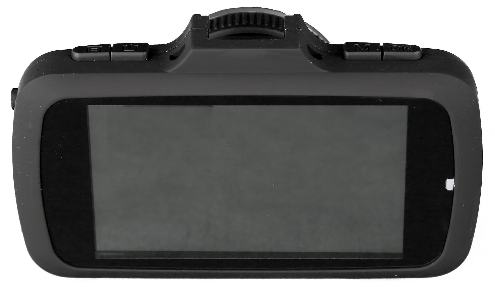 Экран, как вы можете наблюдать на фото, имеет довольно неплохие углы обзора. А вот всерьез управлять устройством, не отвлекаясь от вождения, практически нереально, т. к. для этого требуются обе руки: одна мертвой хваткой держит корпус устройства, чтобы не сбилась настройка объектива, а другая — давит на тугие клавиши, которые для водителя к тому же еще и не всегда удобно расположены.