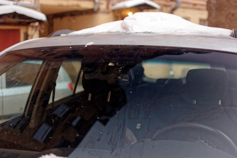 Если хочется установить видеорегистратор повыше, то приходится делать это чуть сбоку от крепления зеркала. И вот тут-то снова выясняется, что если хочется сделать это слева — нужно делать достаточно большой отступ, потому что справа у кронштейна находится штекер питания (причем обычный, не Г-образный), а если справа — то еще больше, потому что именно в этом секторе проворачивается ручка-активатор присоски. Учитывая то, что штекер питания торчит вправо, нам кажется, что наиболее близким к идеалу будет расположение прибора справа от крепления зеркала заднего вида.