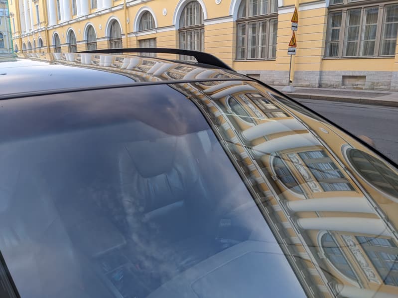 При дневном освещении номера неподвижных автомобилей на записях с регистратора хорошо читаются с расстояния до семи-восьми метров в центре кадра, а по краям поля зрения чуть поменьше — метров до шести.