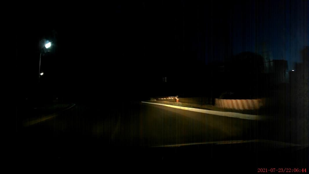 Здесь мы, без сомнений, видим второй фактор: низкую чувствительность сенсора. Ну, или «недостаточно высокую», можно и так сказать. Наш регистратор в темноте становится бесполезным, если снимаемый объект не освещен прямым светом фар. Впрочем, и света фар может оказаться недостаточно. По крайней мере, ближнего. Нужно признать, это серьезный недостаток. Который может быть связан с типом используемого сенсора. В простонародье — матрицы. Эти вертикальные столбы света, сопровождающие каждую подсвеченную область, заставили вспомнить тип сенсоров, который применялся в давних камерах. CCD (ПЗС) — charge coupled device (прибор с зарядовой связью). Но нет, мы проверили — роллинг-шаттер в записи отсутствует. А значит, перед нами привычный CMOS, просто с низкой чувствительностью.