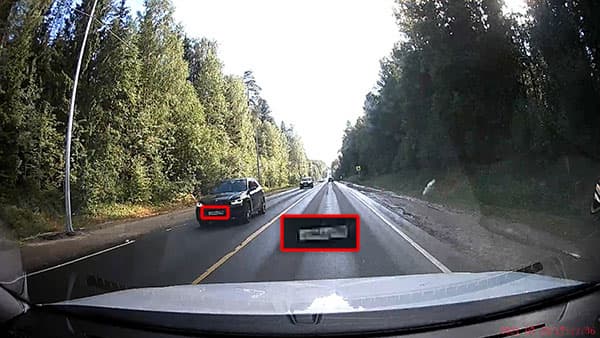 Чуть другой эффект мы увидим в стоп-кадре, взятом из видео, снятого на скорости повыше, около 70 км/ч. В этом случае кодек справляется похуже, хотя изображение все еще остается различимым.