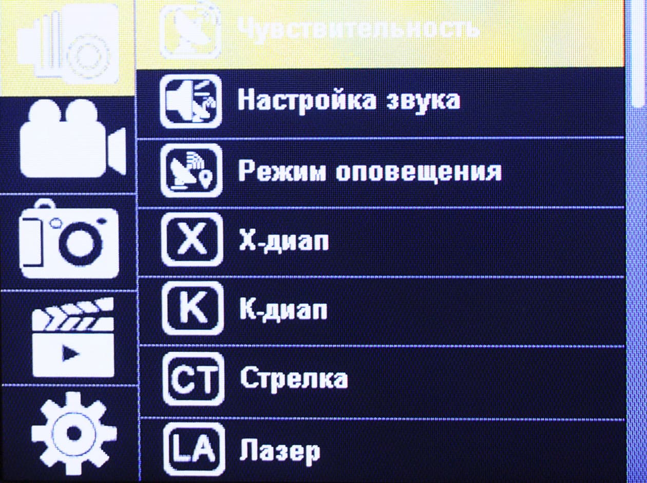 | Чувствительность | Трасса/Город 1/Город 2/IQ | выбор режима чувствительности радара |