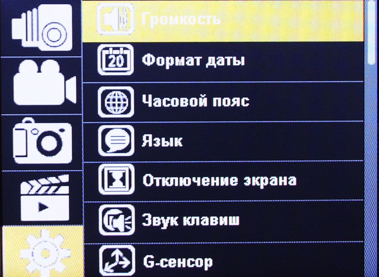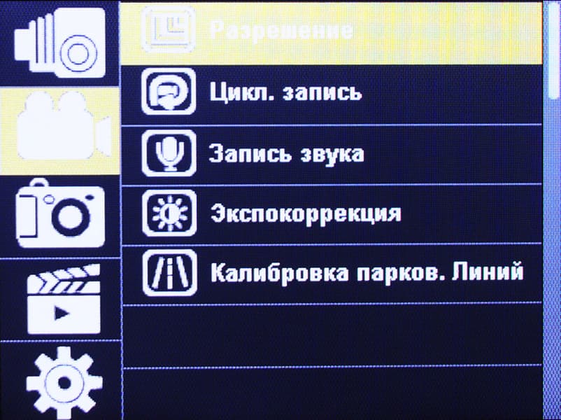 Меню конфигурации у Playme Lite поделено на пять основных разделов: функций GPS и радар-детектора, установок видео- и отдельно фотосъемки, воспроизведения и общих настроек.