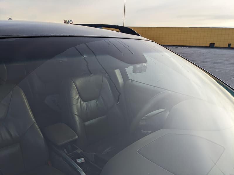 Поставленный так видеорегистратор довольно хорошо заметен снаружи и сам по себе, а серебристое обрамление объектива еще больше бросается в глаза.