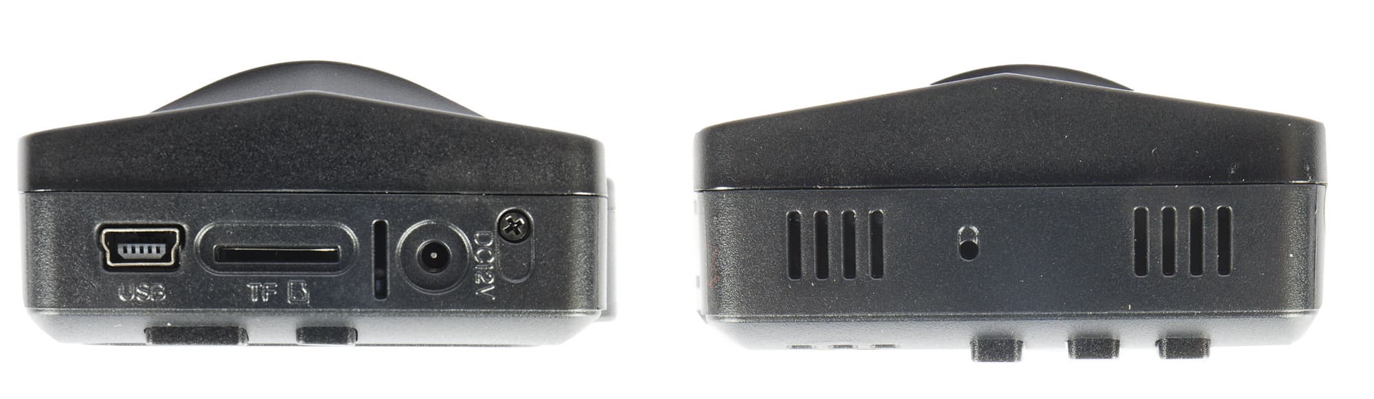 На левой, ближней к водителю, боковой грани — гнездо карты памяти и разъемы для подключения питания и USB-камеры заднего вида. Справа — еще две группы вентиляционных решеток и отверстие кнопки сброса.