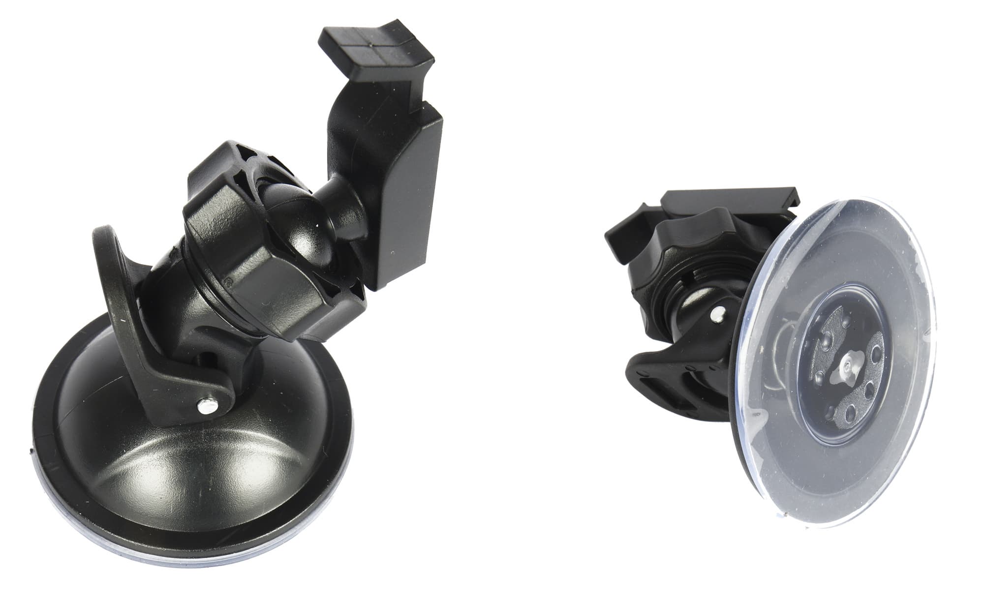 Кронштейн видеорегистратора оснащен силиконовой присоской и рычагом, прижимающим ее к стеклу. Корпус закрепляется на кронштейне пластиковой защелкой и удерживается весьма надежно: чтобы снять, приходится применять заметное усилие.