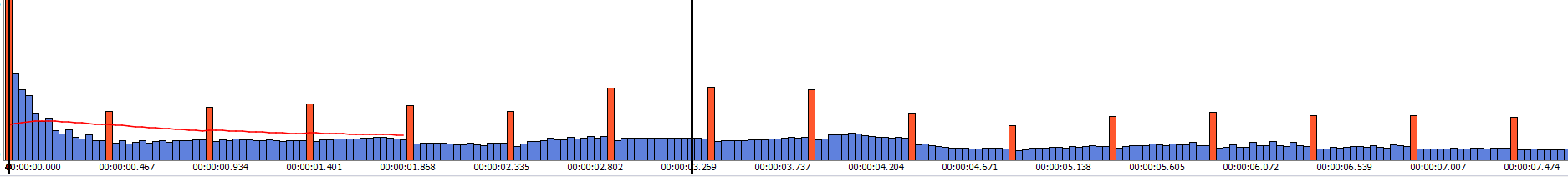 Битрейт в записи распределяется по ключевым (I) и промежуточным (P) кадрам. Двунаправленные (B) кадры в потоке отсутствуют.