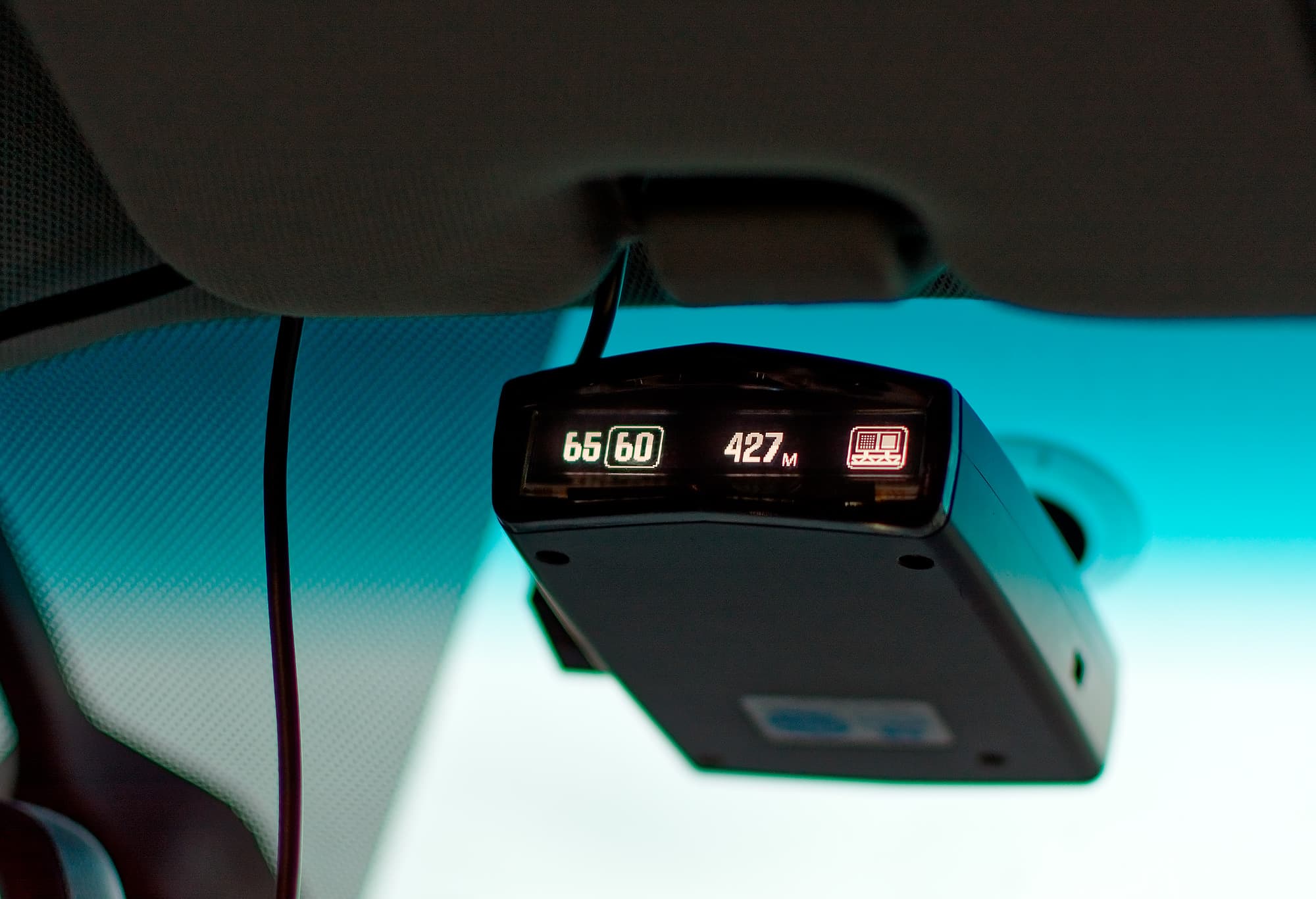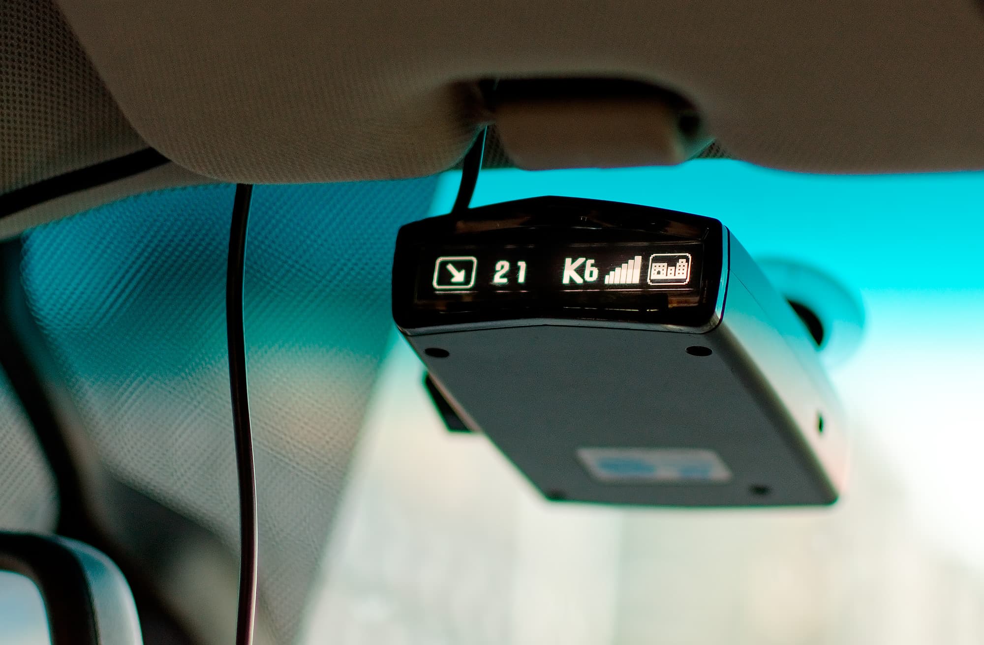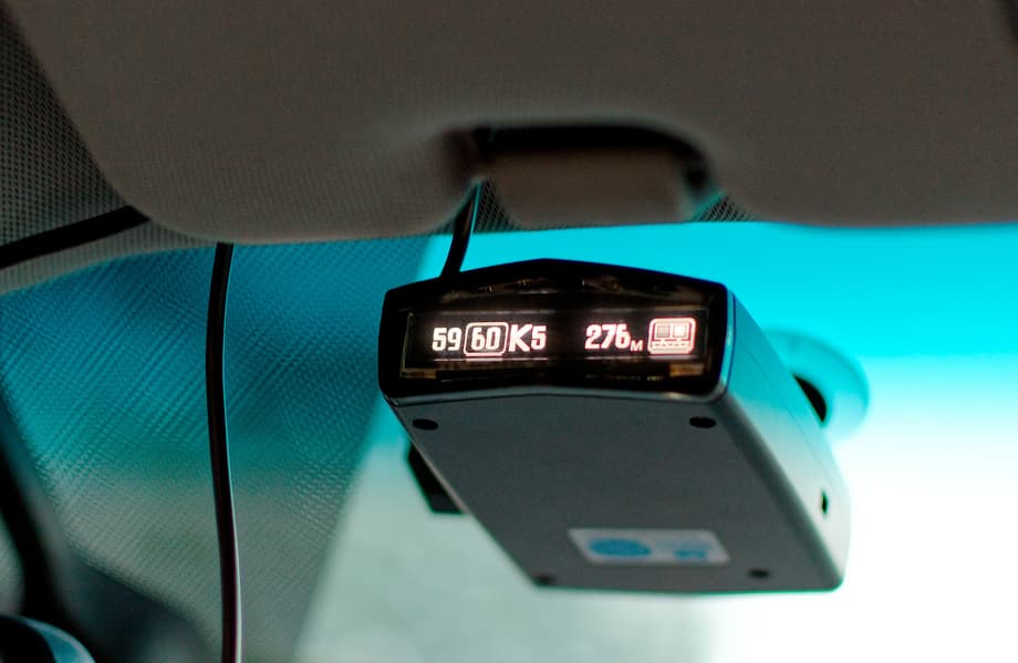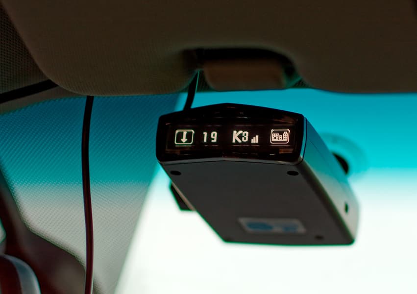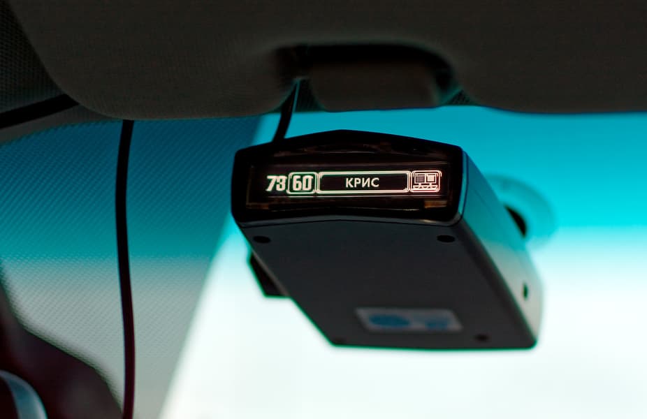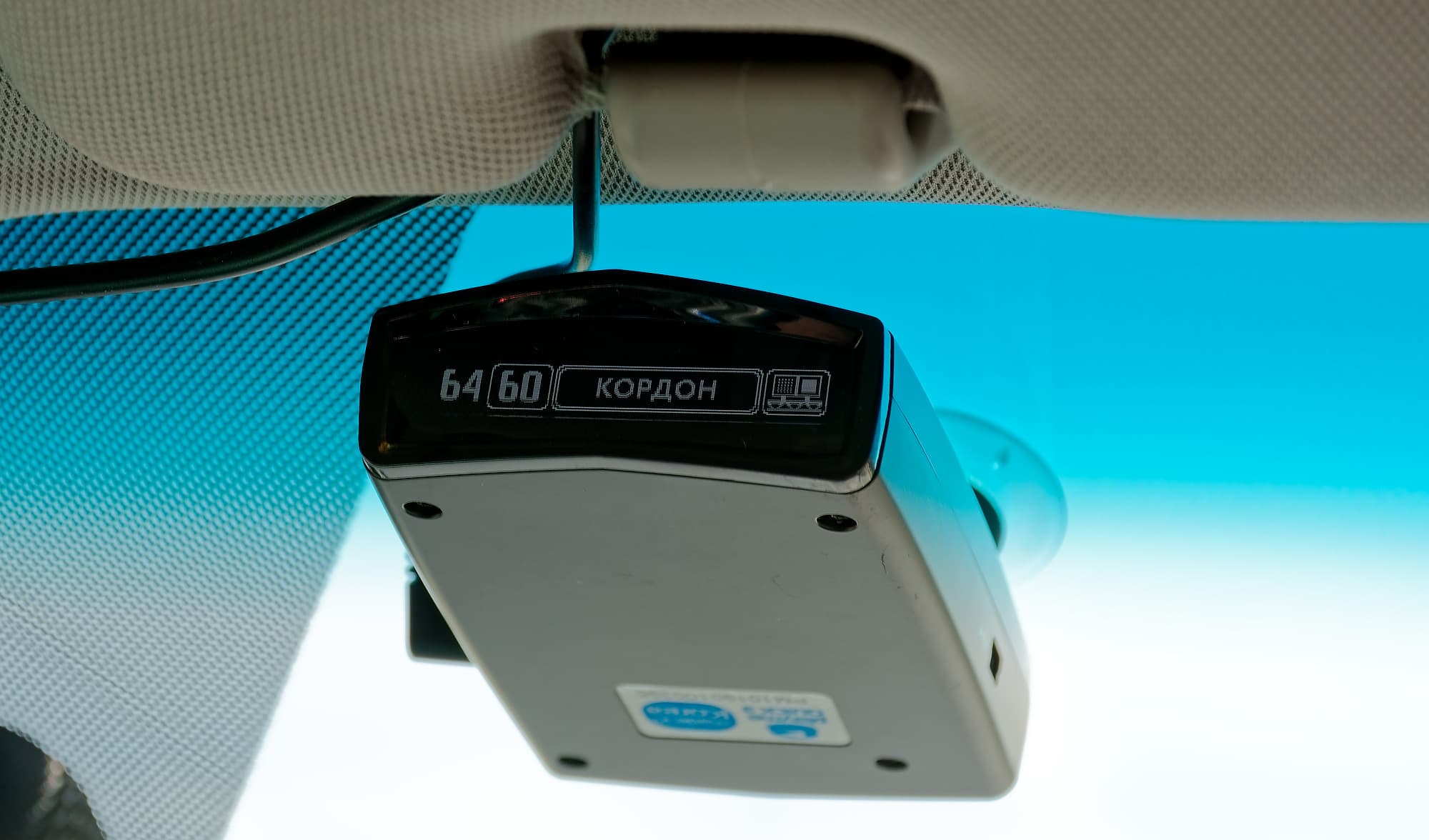 При взгляде сбоку заметить радар-детектор на стекле очень проблематично.