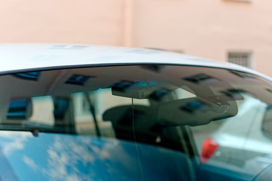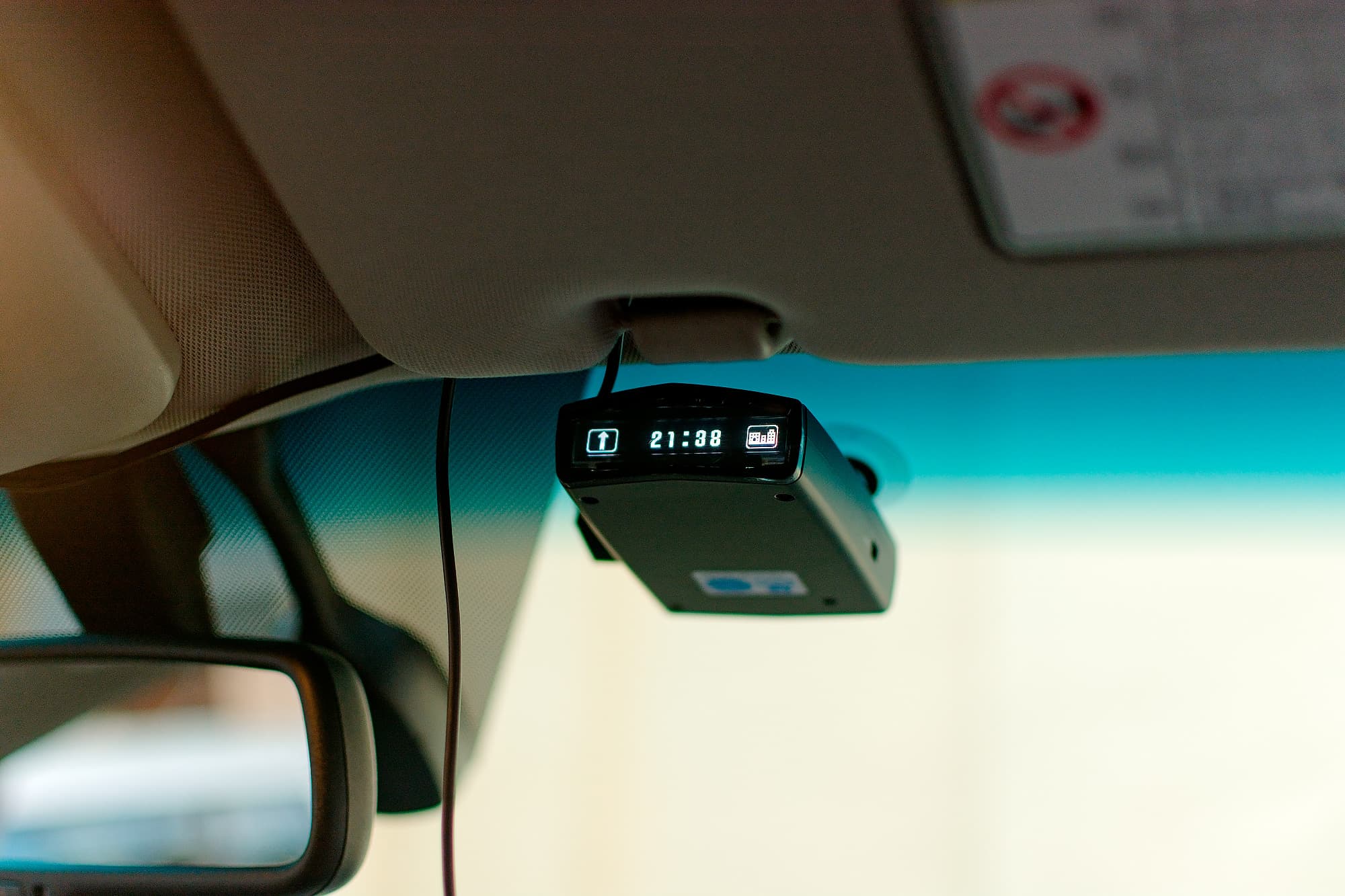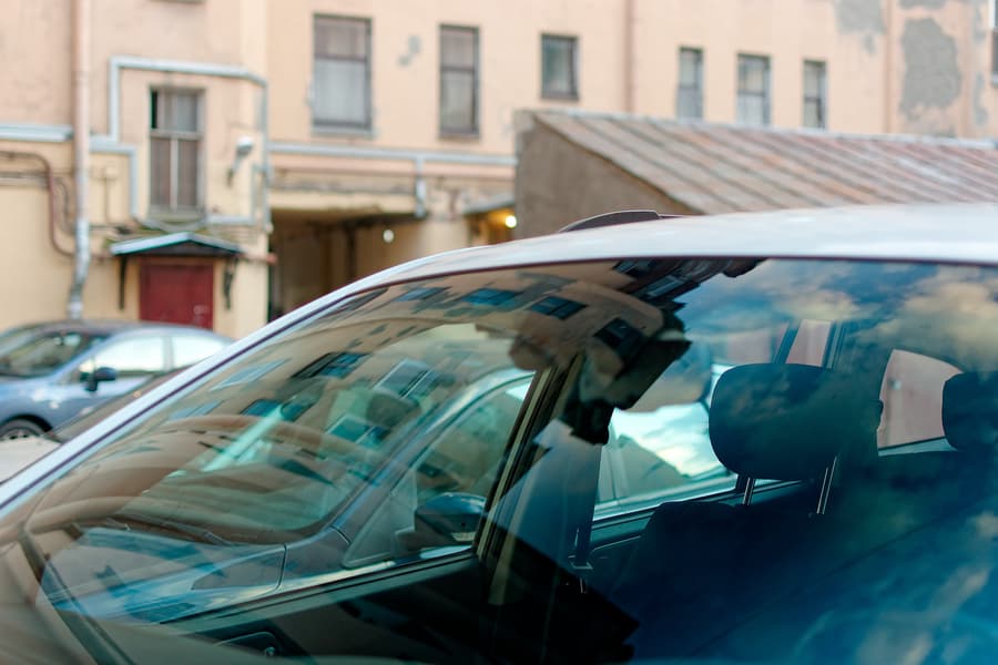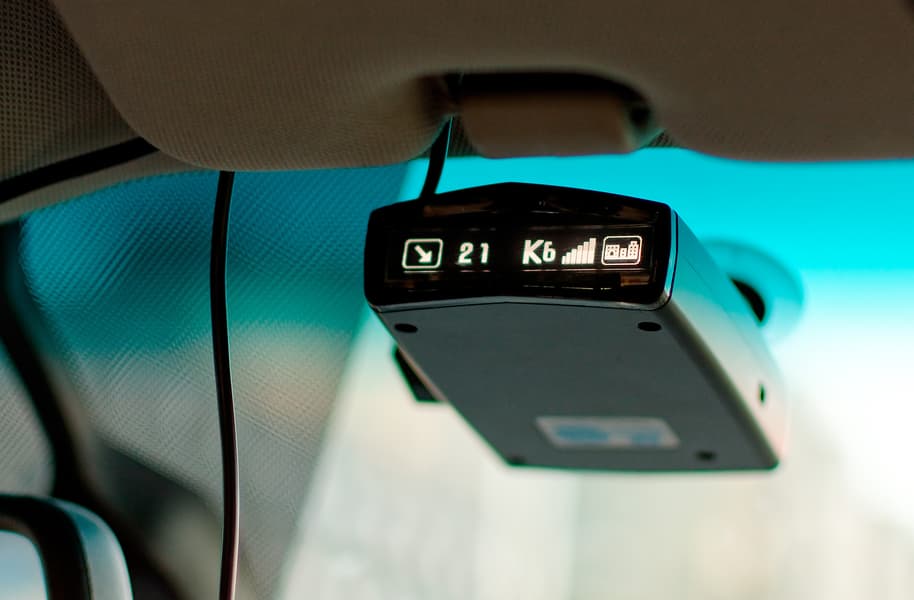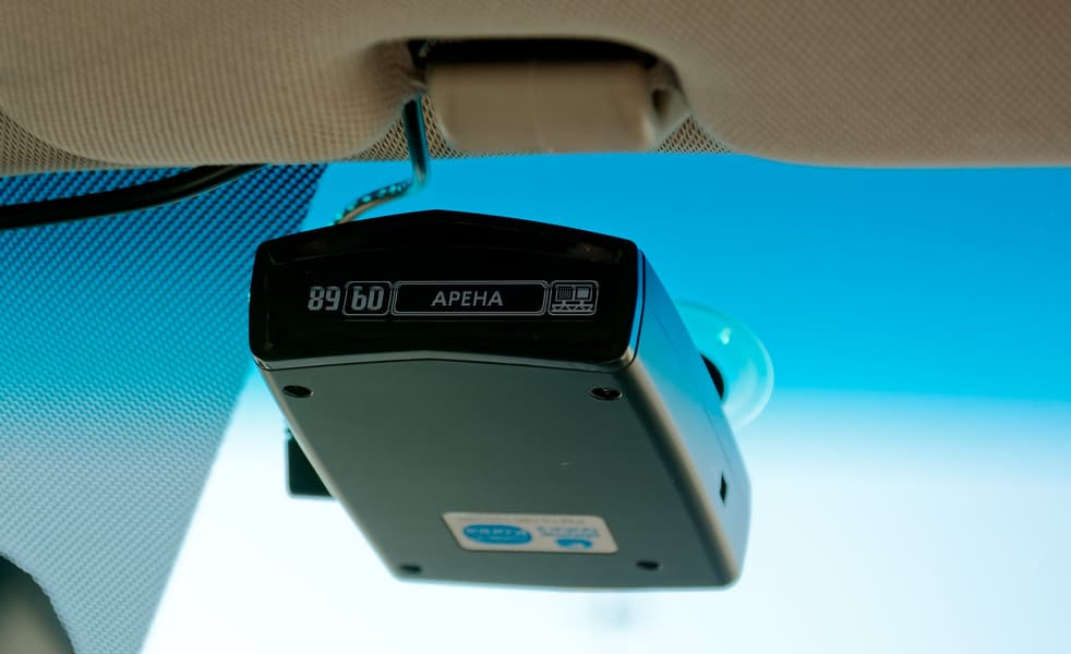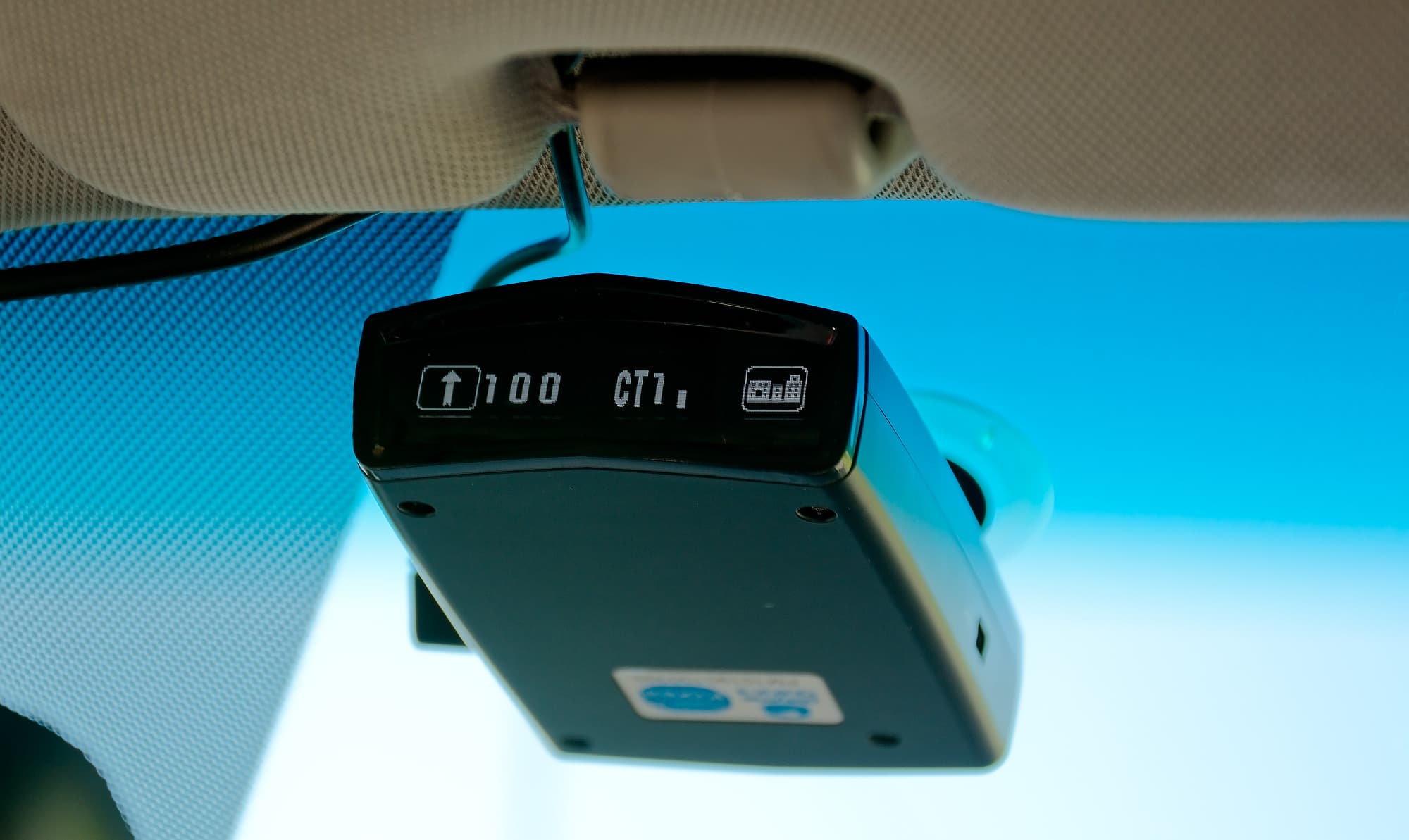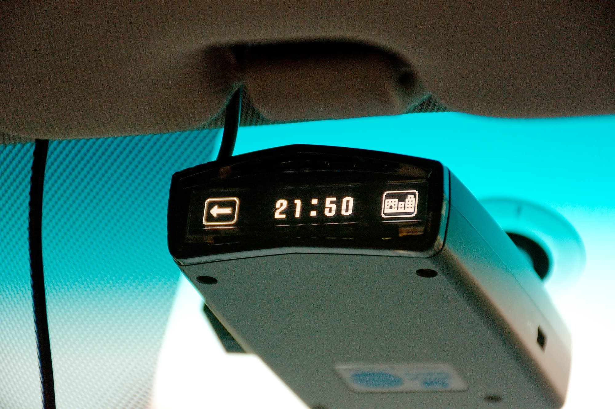 При взгляде сбоку заметить радар-детектор на стекле очень проблематично.